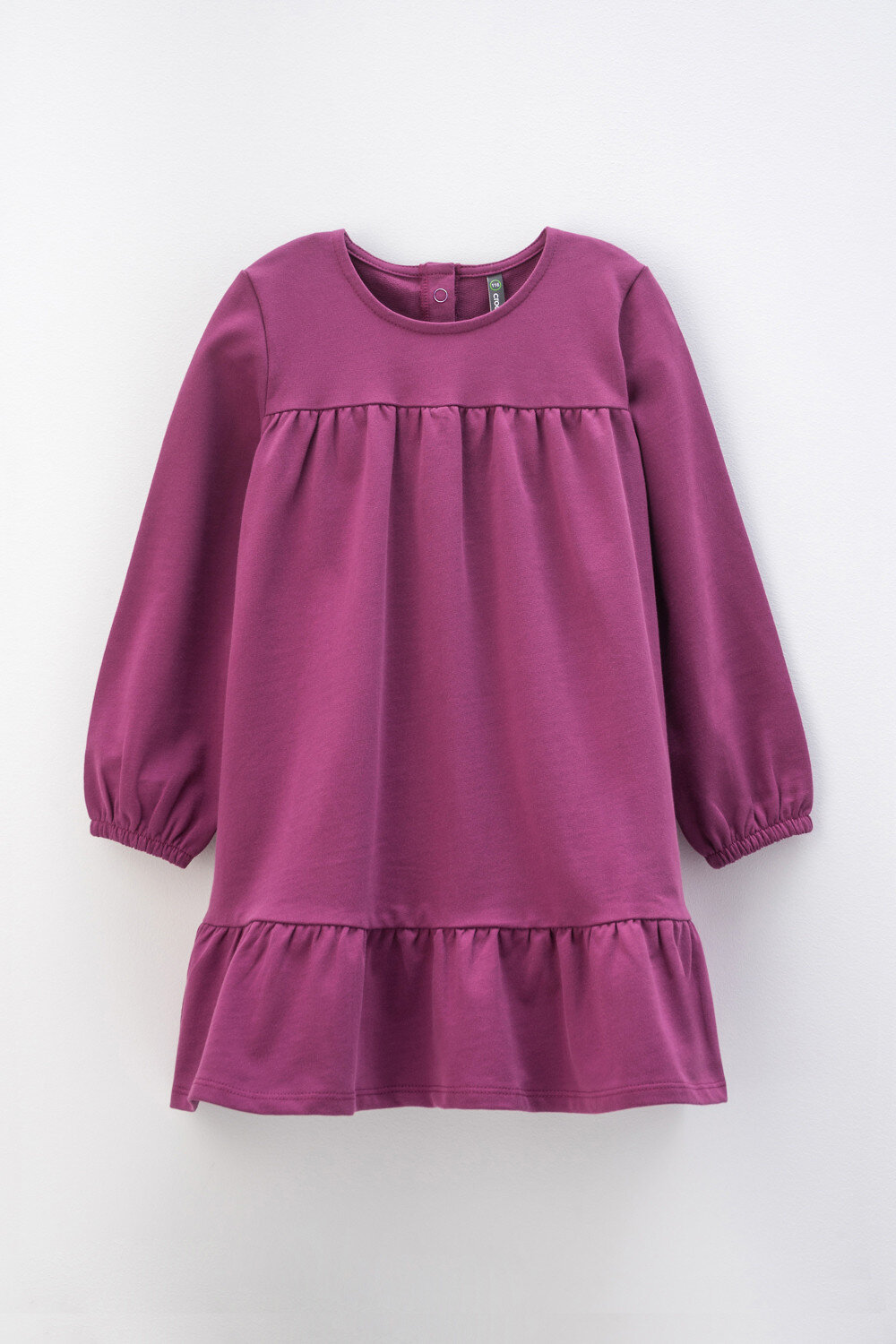 Платье с длинными рукавами из петельчатого футера. Изделие сохраняет цвет и форму после многократных стирок. Предусмотрена застежка на кнопки на спине.