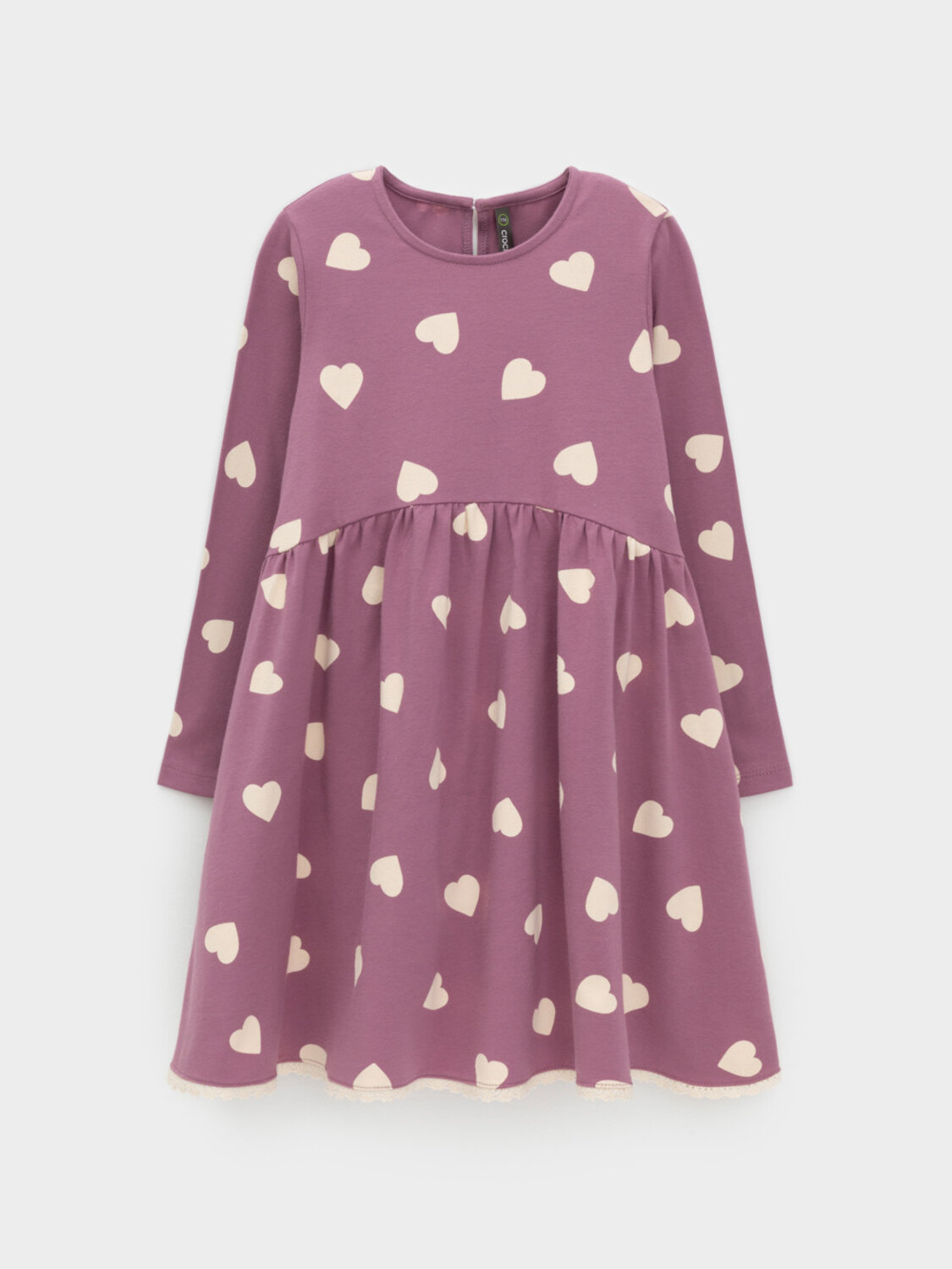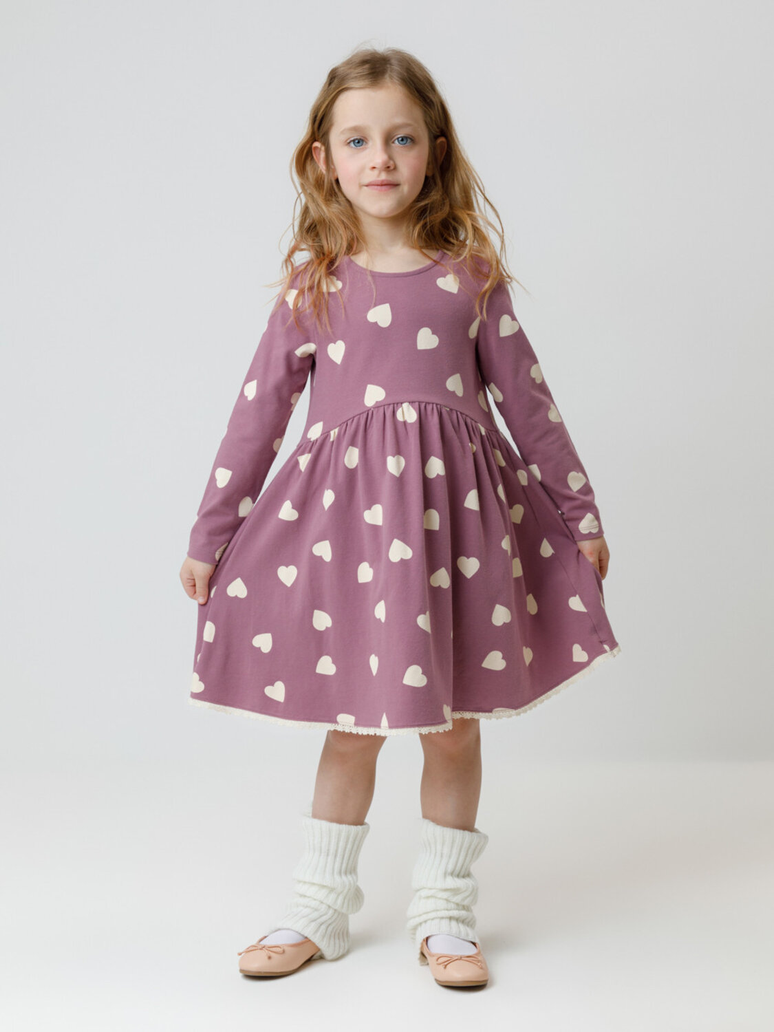 Платье для девочки с длинными рукавами из высококачественного гладкого трикотажа. Для удобства одевания на спинке платье застёгивается на пуговицу. Украшено кружевом. Платье сохраняет форму и стойкий цвет после многочисленных стирок и идеально подходит на каждый день. Все трикотажные полотна производятся в соответствии с нормами швейцарского сертификата ЭкоТекс.