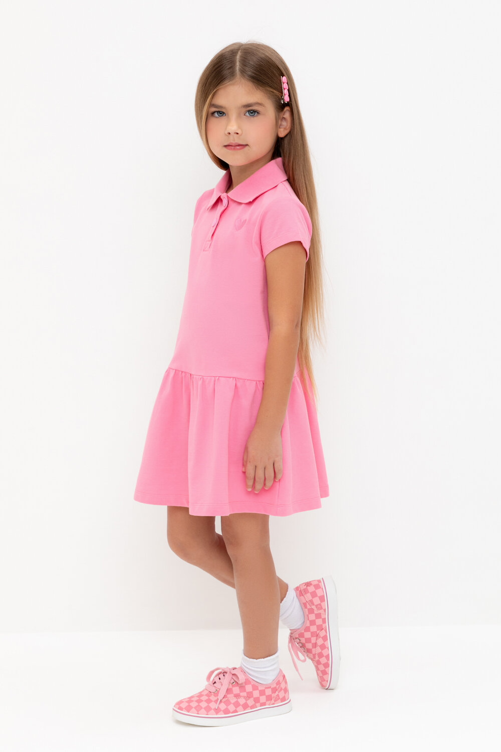 Платье для девочки из высококачественного трикотажа пике с вязаным воротничком. Для удобства одевания платье застёгивается на кнопки спереди. Платье сохраняет форму и стойкий цвет после многочисленных стирок и идеально подходит на каждый день.