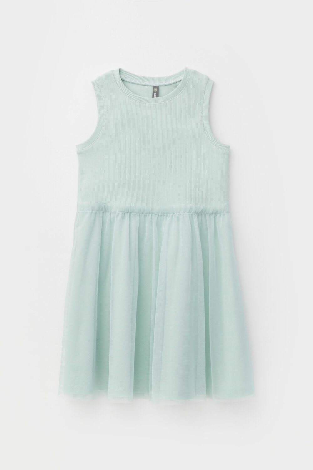 Нарядное летнее платье для девочки с подкладом из трикотажного полотна. Верх изделия выполнен из сетки.
