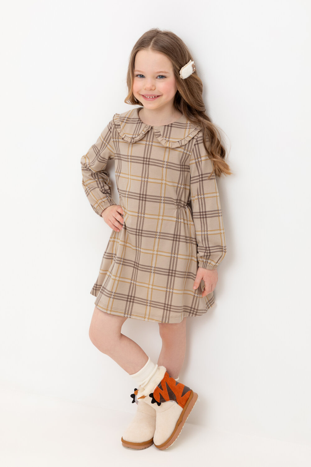 CROCKID Платье КР 5890 тем.бежевый, текстильная клетка