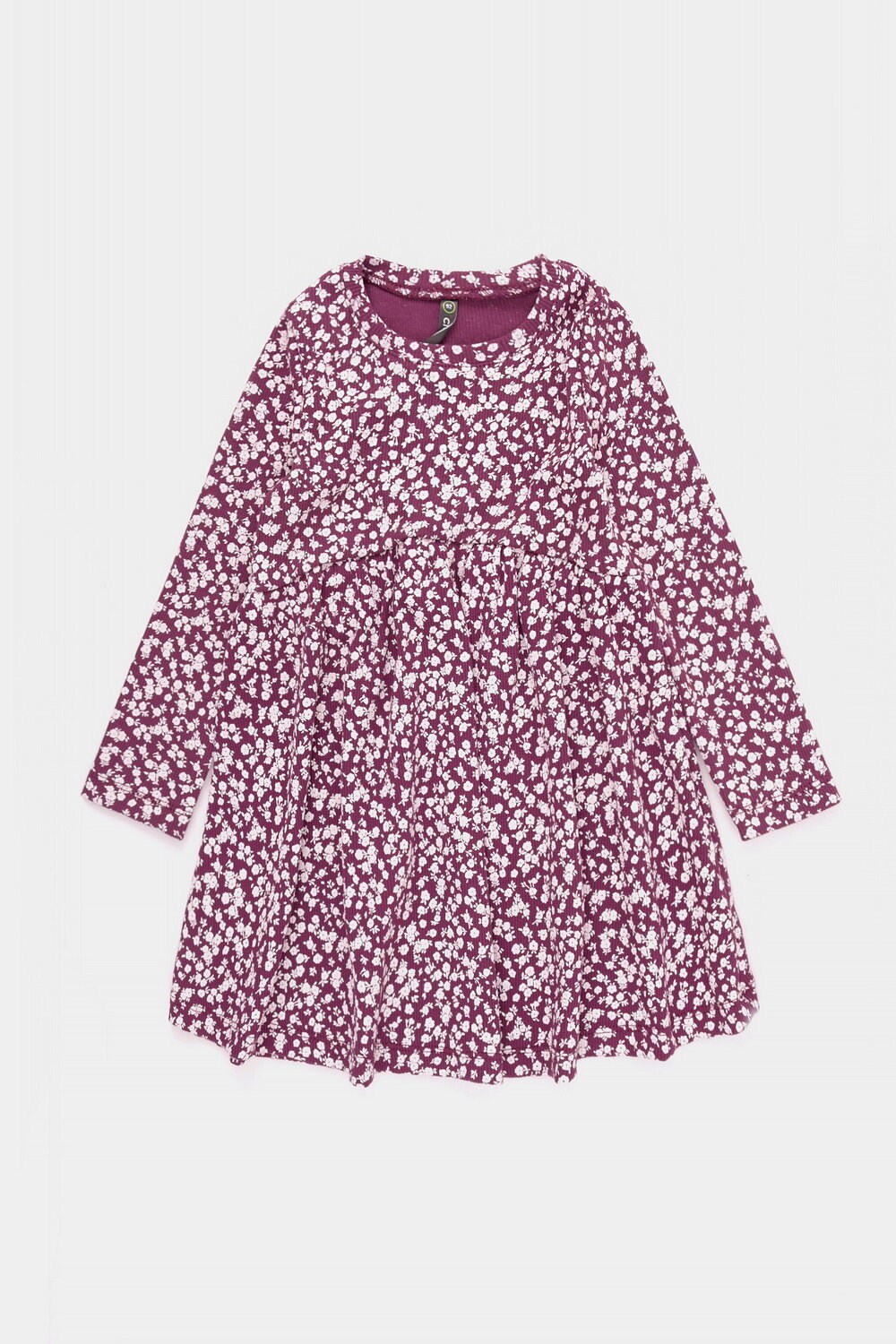 Платье для девочки из эластичного трикотажа в рубчик. Оригинальная набивка выполнена из стойких текстильных гипоаллергенных красителей.