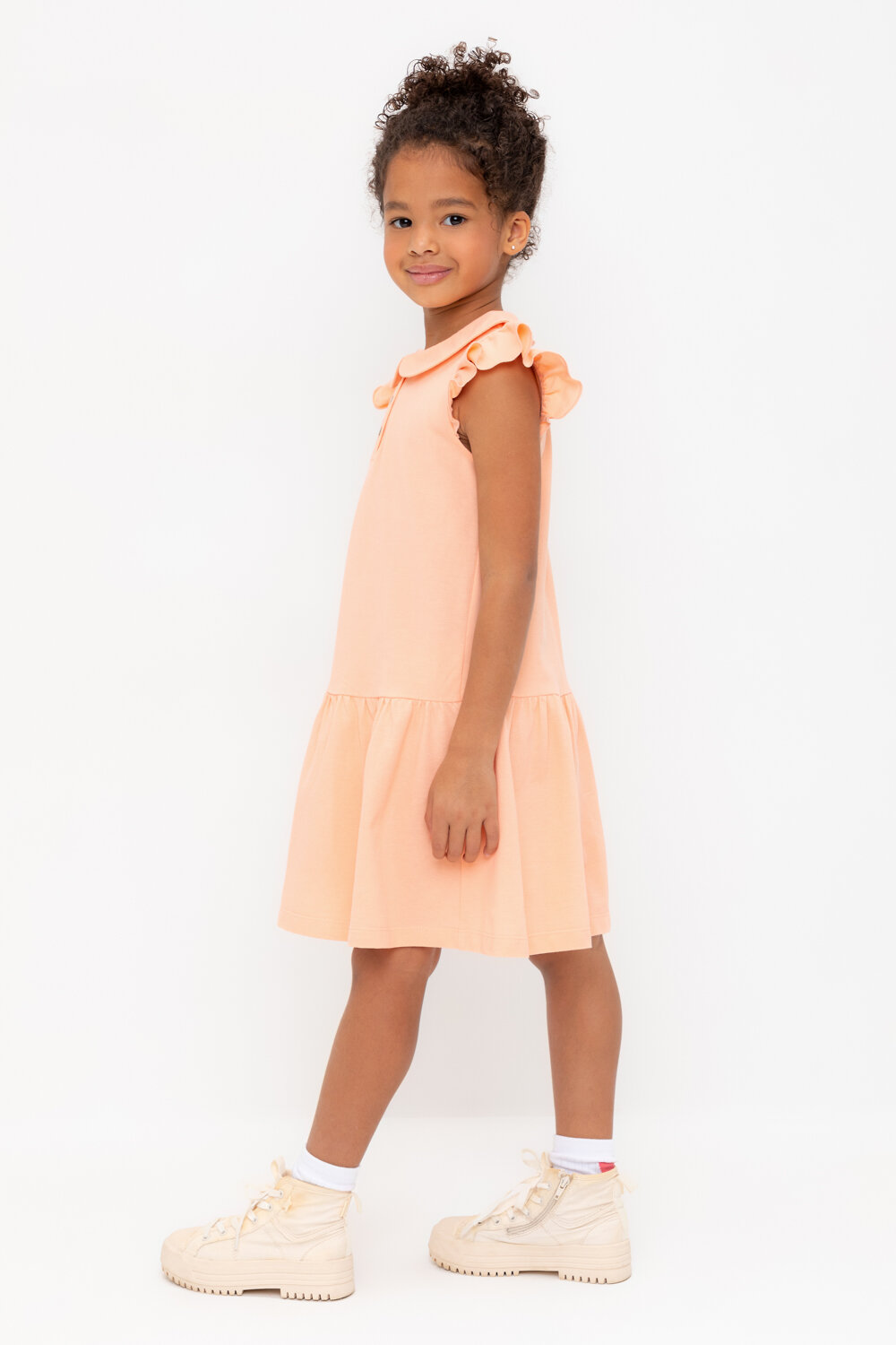 Платье для девочки из высококачественного трикотажа пике с воротничком и крылышками. Для удобства одевания платье застёгивается на кнопки спереди. Платье сохраняет форму и стойкий цвет после многочисленных стирок и идеально подходит на каждый день.