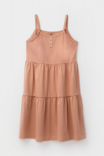 Легкое трикотажное платье для девочки из высококачественного хлопка. Застёгивается на пуговицу на спинке. Оригинальная набивка выполнена из стойких текстильных гипоаллергенных красителей. Изделие сохраняет цвет и форму после многократных стирок.