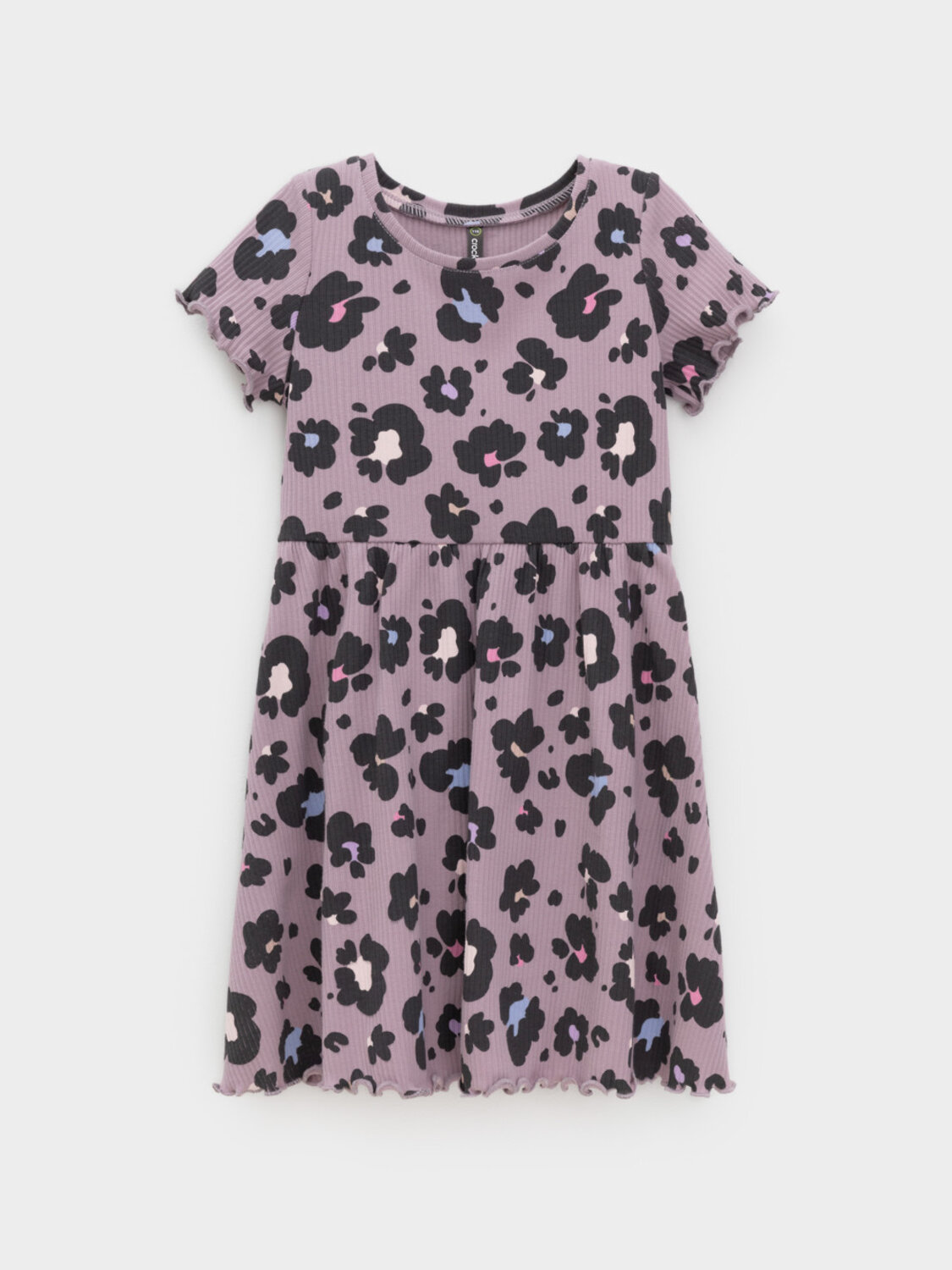 Платье для девочки из эластичного трикотажа в рубчик. Оригинальный рисунок выполнен из стойких текстильных гипоаллергенных красителей. Изделие сохраняет цвет и форму после многократных стирок. Все трикотажные полотна производятся в соответствии с нормами швейцарского сертификата ЭкоТекс.