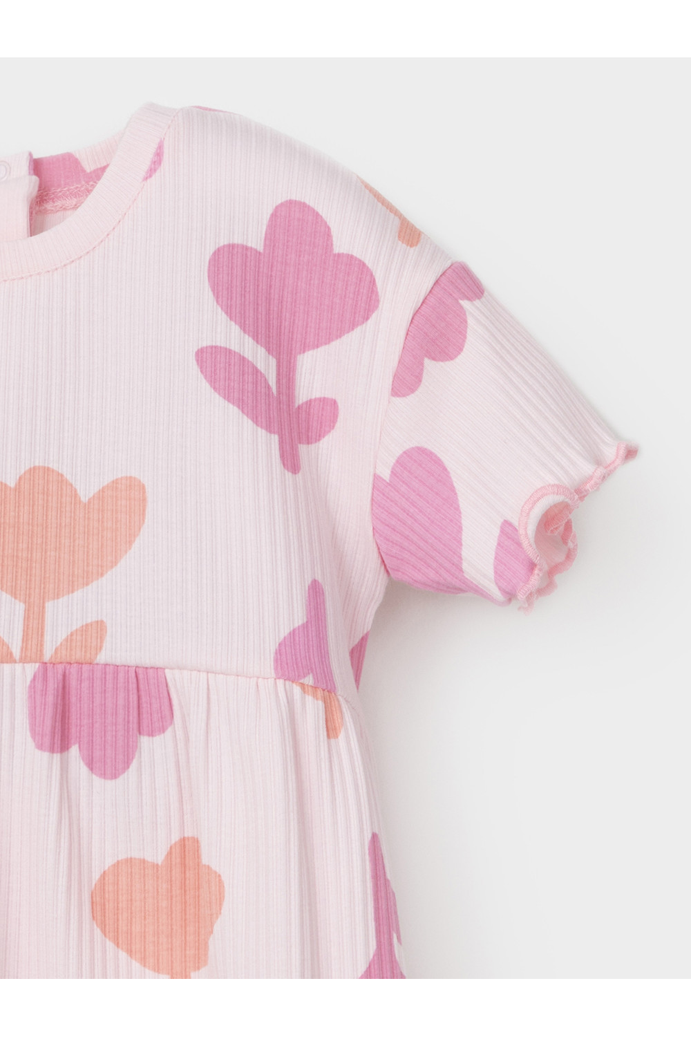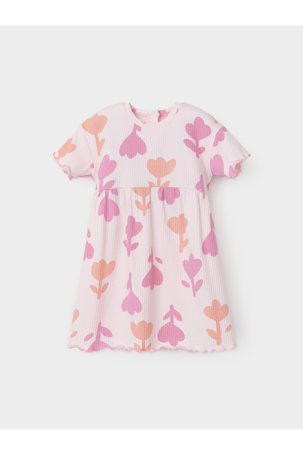 Платье для девочки из эластичного трикотажа в рубчик. Застёгивается на спинке на кнопки. Оригинальный рисунок выполнен из стойких текстильных гипоаллергенных красителей. Изделие сохраняет цвет и форму после многократных стирок. Все трикотажные полотна производятся в соответствии с нормами швейцарского сертификата ЭкоТекс.