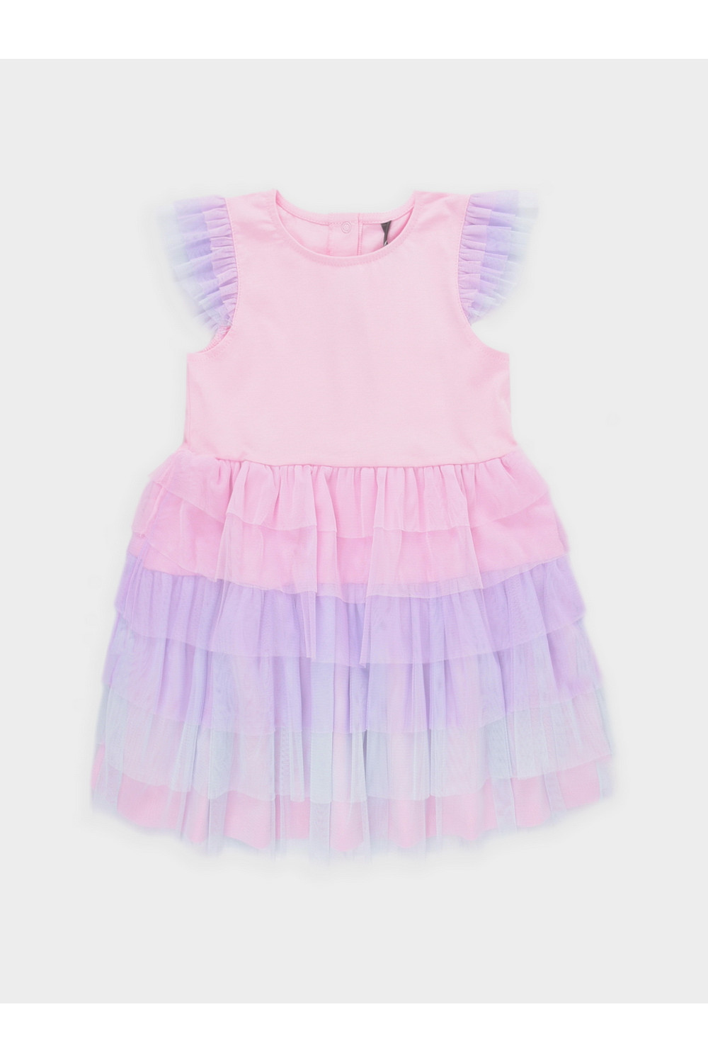 Платье нарядное для девочки из высококачественного хлопкового трикотажа супрем. Украшено воздушными крылышками и ярусами из сетки. Застёгивается сзади на кнопки. Платье сохраняет форму и стойкий цвет после многочисленных стирок и идеально подходит для праздничных и торжественных мероприятий. Все трикотажные полотна производятся в соответствии с нормами швейцарского сертификата ЭкоТекс.