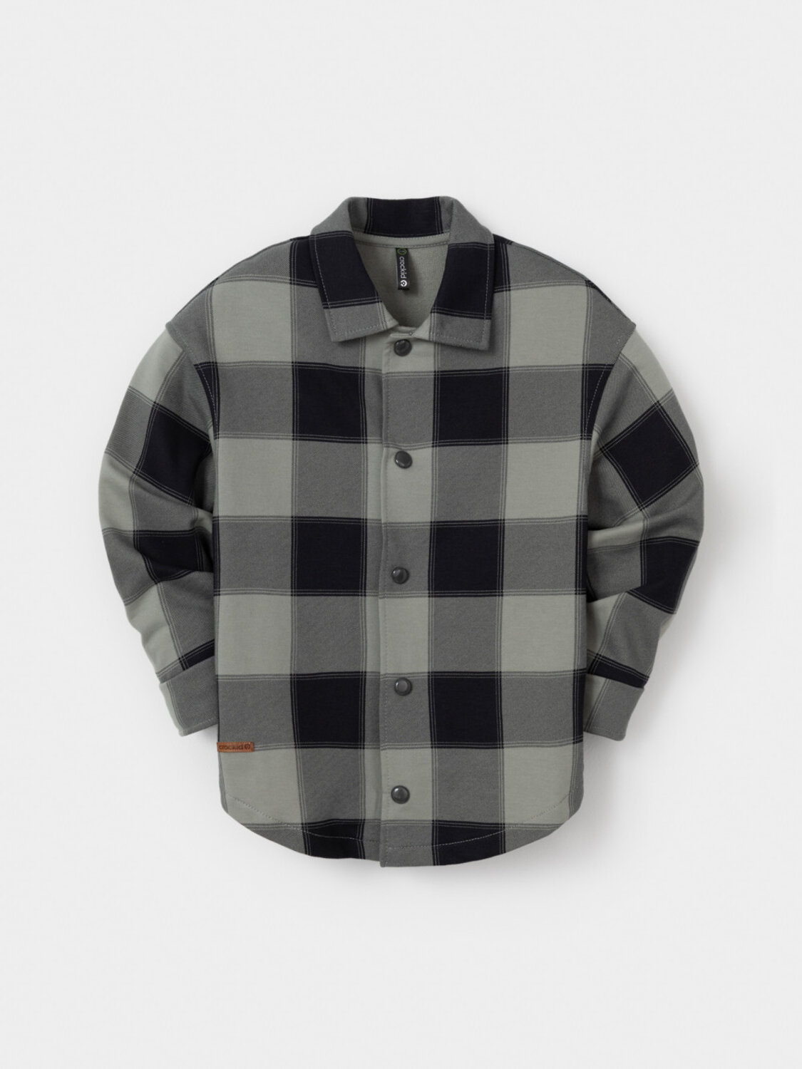 Свободная трикотажная рубашка для мальчика из мягкого петельчатого футера. Застёгивается на кнопки. Модель с закругленным низом и спущенным плечом. Рисунок в клетку выполнен из стойких текстильных гипоаллергенных красителей. Изделие сохраняет цвет и форму после многократных стирок. Все трикотажные полотна производятся в соответствии с нормами швейцарского сертификата ЭкоТекс.