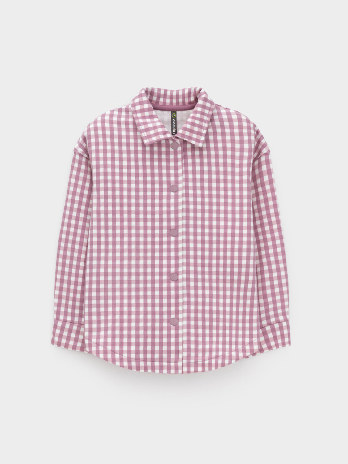 Свободная трикотажная рубашка для девочки из мягкого петельчатого футера. Застёгивается на кнопки. Модель с закругленным низом и спущенным плечом. Рисунок в клетку выполнен из стойких текстильных гипоаллергенных красителей. Изделие сохраняет цвет и форму после многократных стирок. Все трикотажные полотна производятся в соответствии с нормами швейцарского сертификата ЭкоТекс.