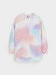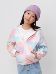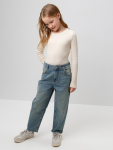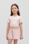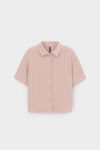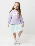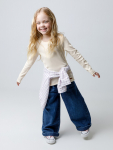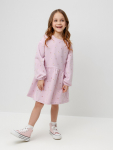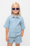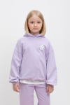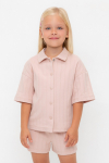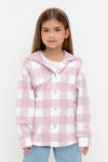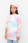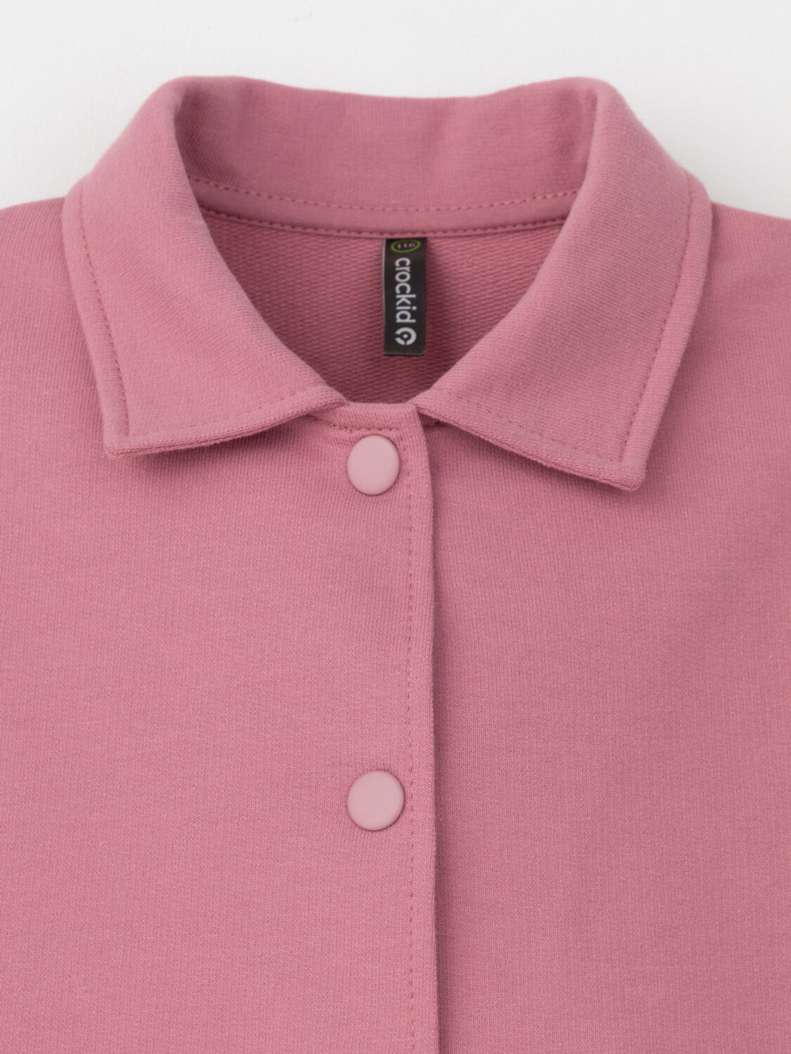 Свободная трикотажная рубашка для девочки из мягкого петельчатого футера. Застёгивается на кнопки. Модель с закругленным низом и спущенным плечом.