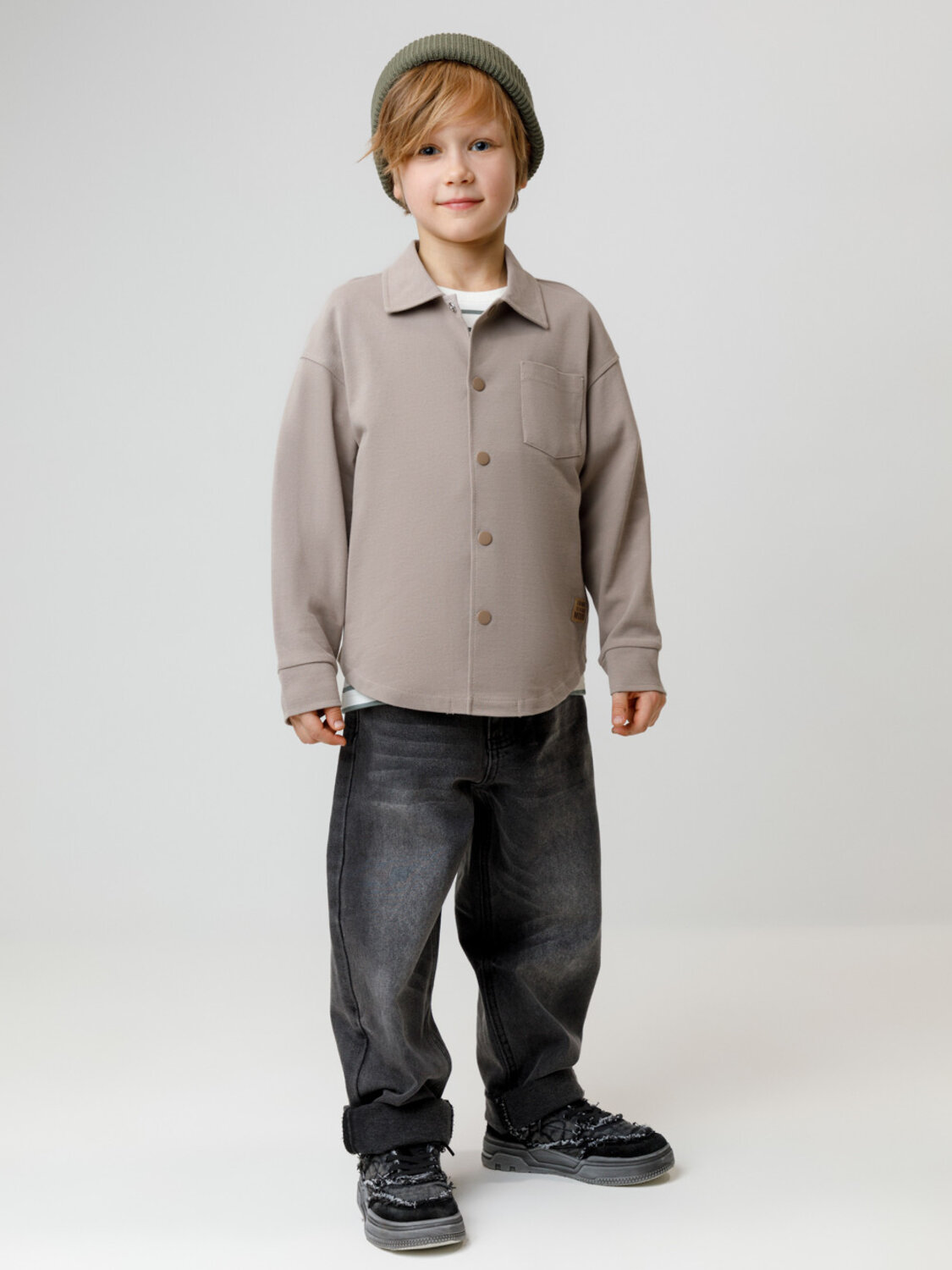 Свободная трикотажная рубашка для мальчика из мягкого трикотажа пике. Застёгивается на кнопки. Модель с закругленным низом и спущенным плечом. Все трикотажные полотна производятся в соответствии с нормами швейцарского сертификата ЭкоТекс.