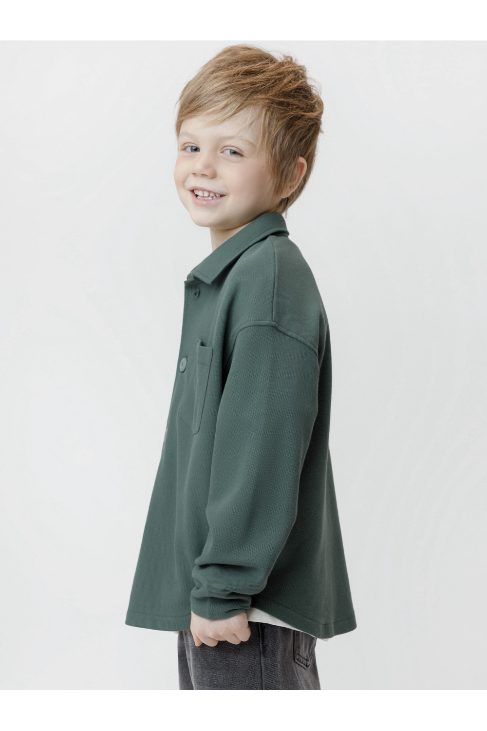 Рубашка для мальчика из мягкого высококачественного трикотажа пике. Застёгивается на пуговицы. Модель со спущенным плечом. Изделие сохраняет цвет и форму после многократных стирок. Все трикотажные полотна производятся в соответствии с нормами швейцарского сертификата ЭкоТекс.