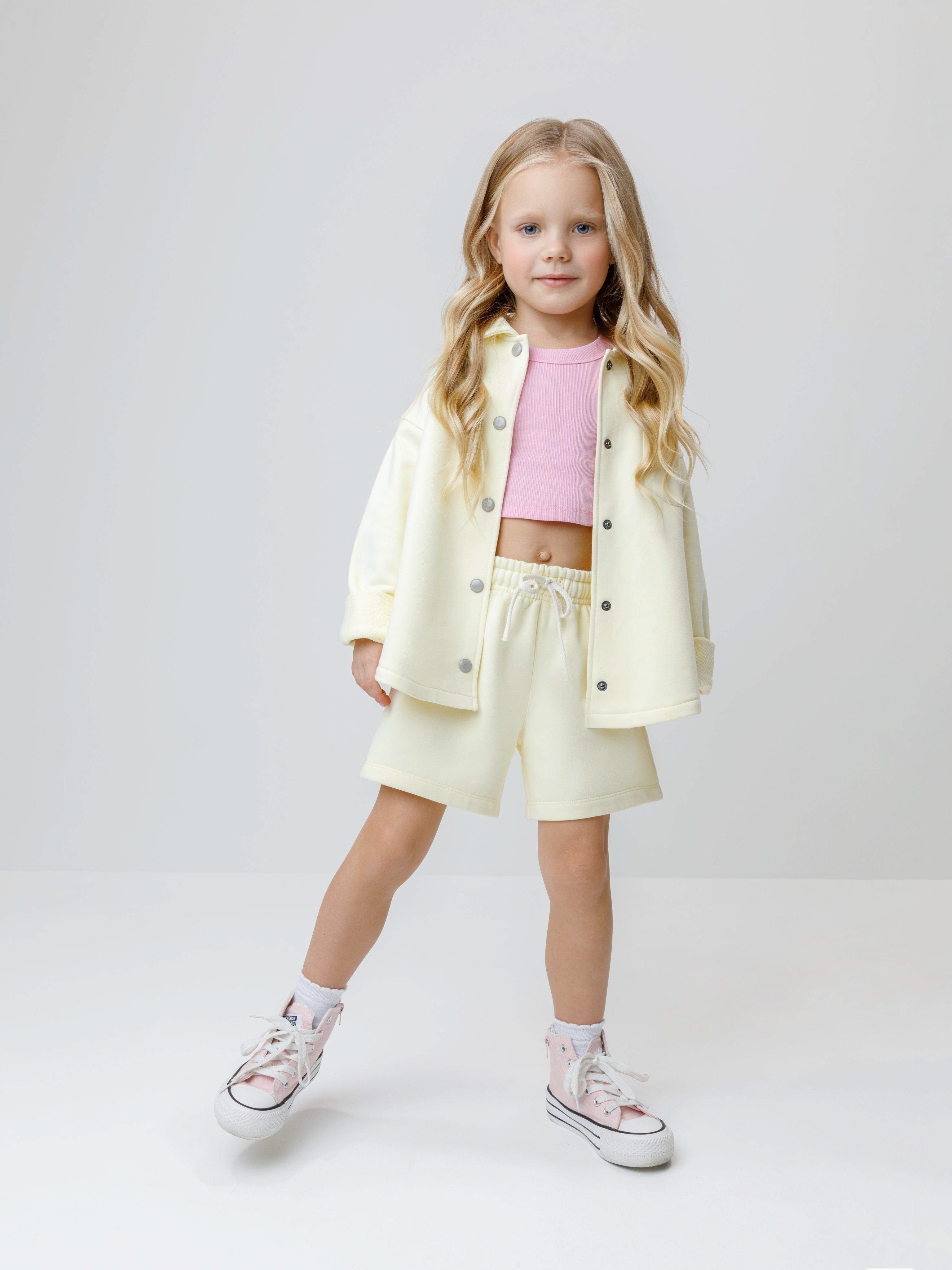 Свободная трикотажная рубашка для девочки из мягкого петельчатого футера. Застёгивается на кнопки. Модель с закруглённым низом и спущенным плечом. Изделие сохраняет цвет и форму после многократных стирок. Все трикотажные полотна производятся в соответствии с нормами швейцарского сертификата ЭкоТекс.