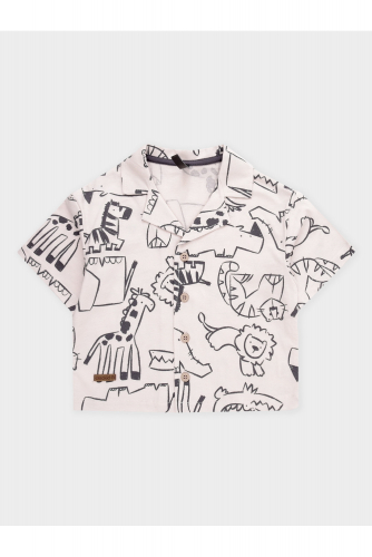 Свободная трикотажная рубашка для мальчика из мягкого петельчатого футера. Застёгивается на кнопки. Модель с закруглённым низом и спущенным плечом. Изделие сохраняет цвет и форму после многократных стирок. Все трикотажные полотна производятся в соответствии с нормами швейцарского сертификата ЭкоТекс.
