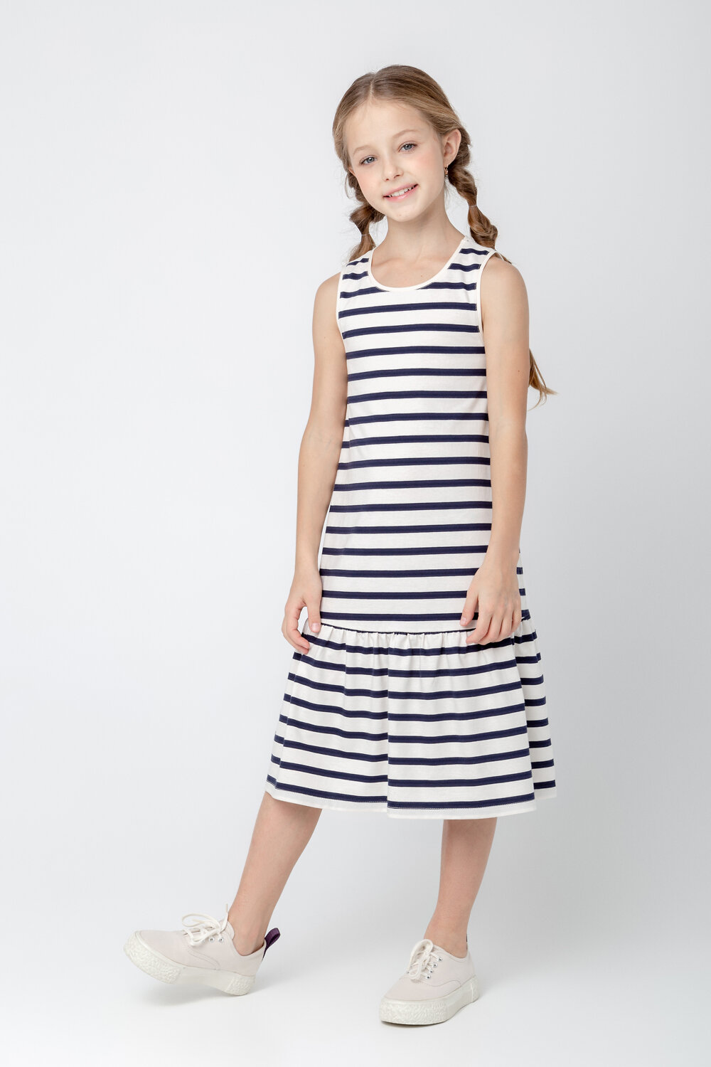 Летний сарафан для девочки из высококачественного трикотажного полотна. Оригинальная набивка выполнена из стойких текстильных красителей.