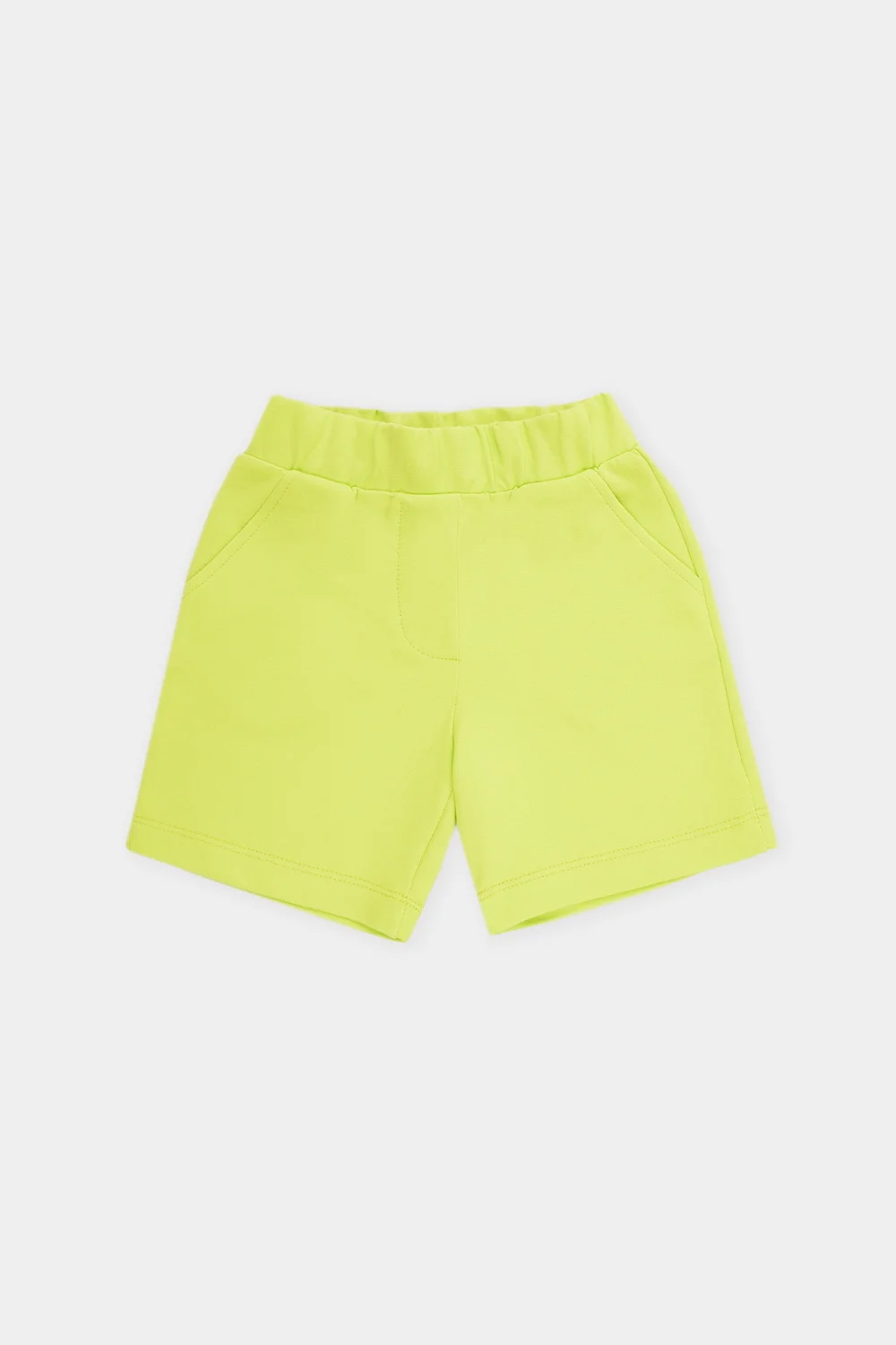 Трикотажные шорты для девочки из петельчатого футера. Эластичный пояс на резинке, по бокам два удобных кармана.