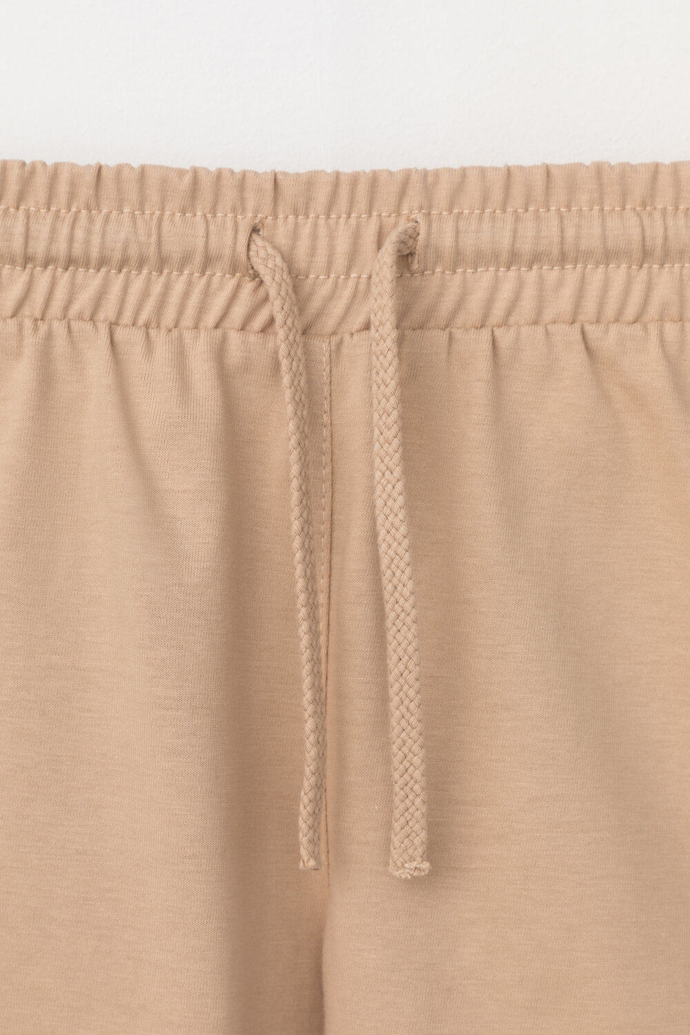 Легкие трикотажные шорты для мальчика из высококачественного хлопка. Эластичный пояс регулируется при помощи шнурка.