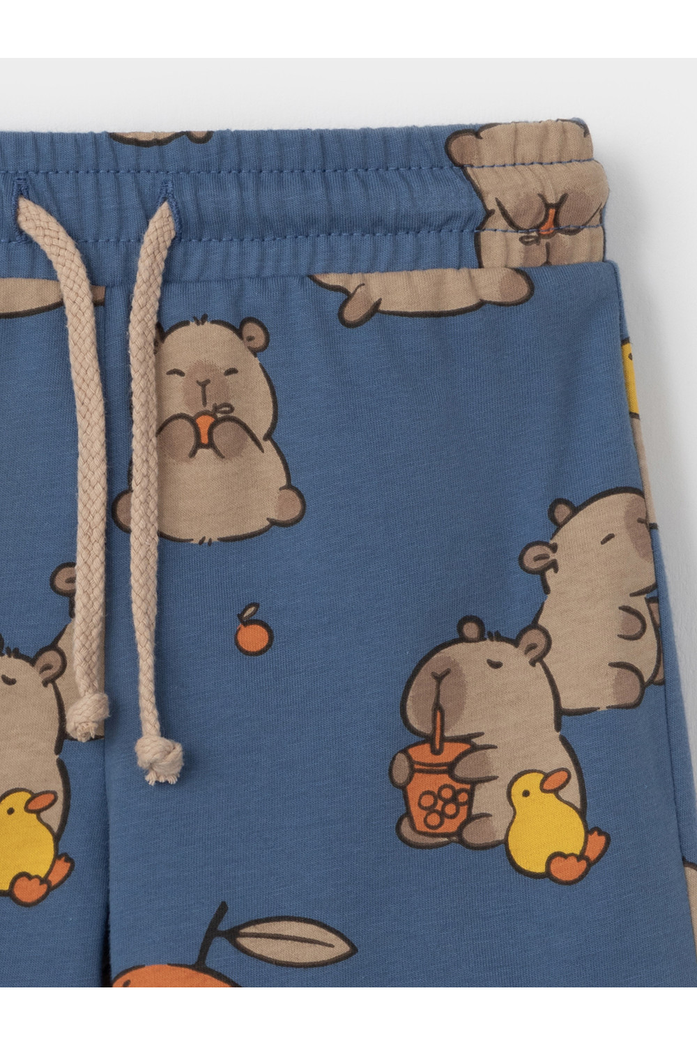 Лёгкие шорты для мальчика из гладкого трикотажа супрем. Эластичный пояс на резинке регулируется по ширине с помощью шнурка. Изделие сохраняет цвет и форму после многократных стирок. Все трикотажные полотна производятся в соответствии с нормами швейцарского сертификата ЭкоТекс.