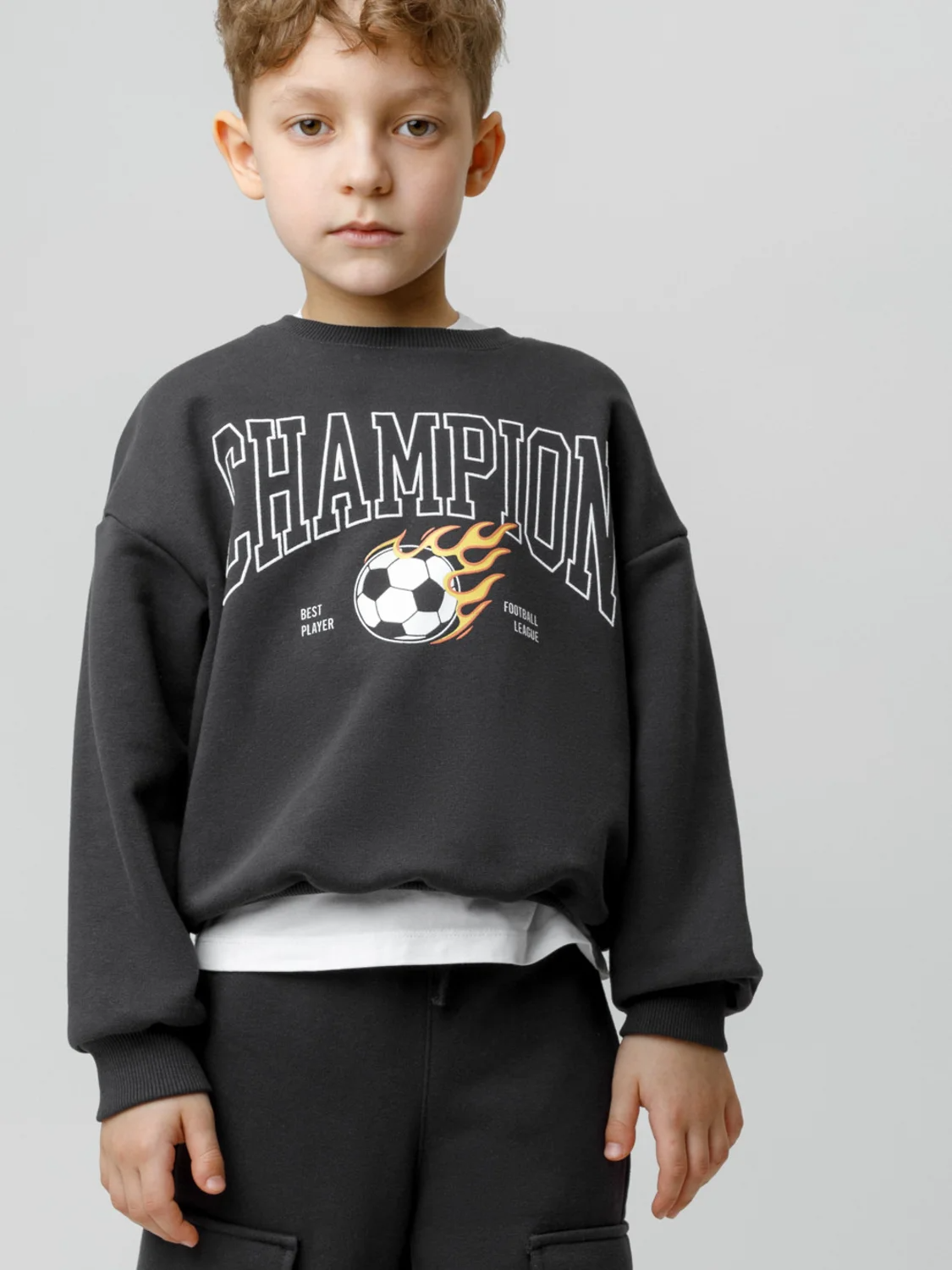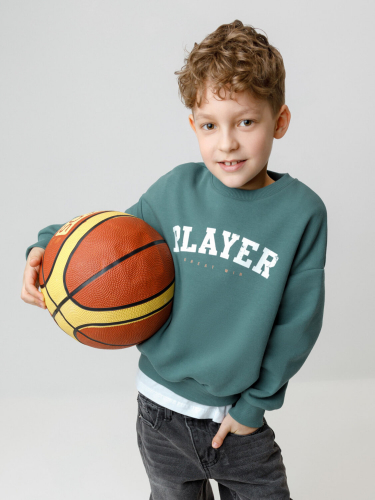 Свитшот для мальчика из высококачественного петельчатого футера. В составе 80% натурального хлопка и 20% полиэстера, при этом полиэстер ввязан внутрь по особой технологии и не соприкасается с кожей. Обтачка горловины, манжеты и пояс выполнены из эластичного полотна. Для удобства одевания имеется застёжка на кнопки в размерах 92 и 98. Оригинальный принт нанесён с помощью стойких текстильных гипоаллергенных красителей.