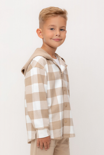 Толстовка с капюшоном для мальчика из однотонного петельчатого футера. Манжеты и пояс из эластичного трикотажа в рубчик. Спереди принт.