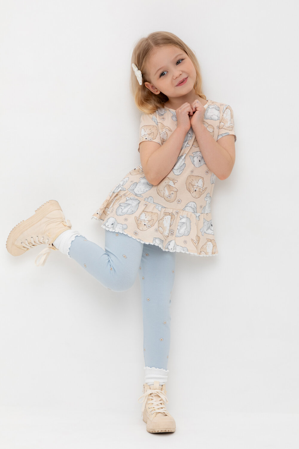 CROCKID Туника КР 302745-1 песчаный, зайчики и ромашки