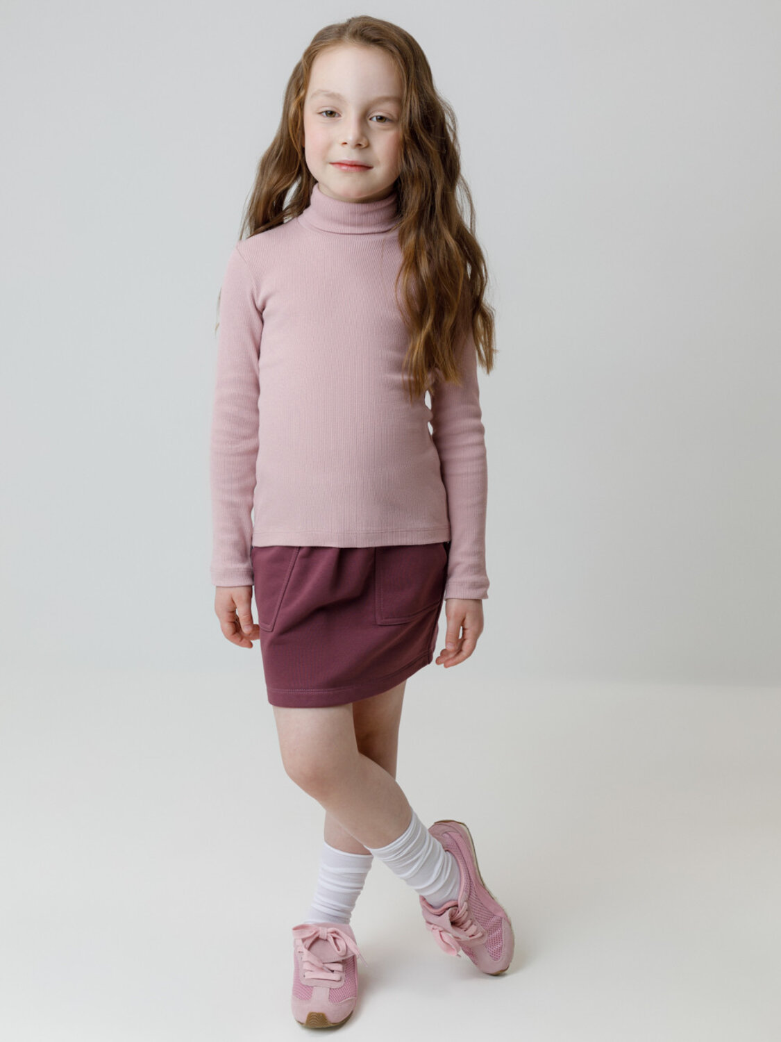 Однотонная водолазка из эластичного трикотажа в рубчик для девочки. Изделие сохраняет форму и стойкий цвет после многочисленных стирок и идеально подходит на каждый день. Все трикотажные полотна производятся в соответствии с нормами швейцарского сертификата ЭкоТекс.
