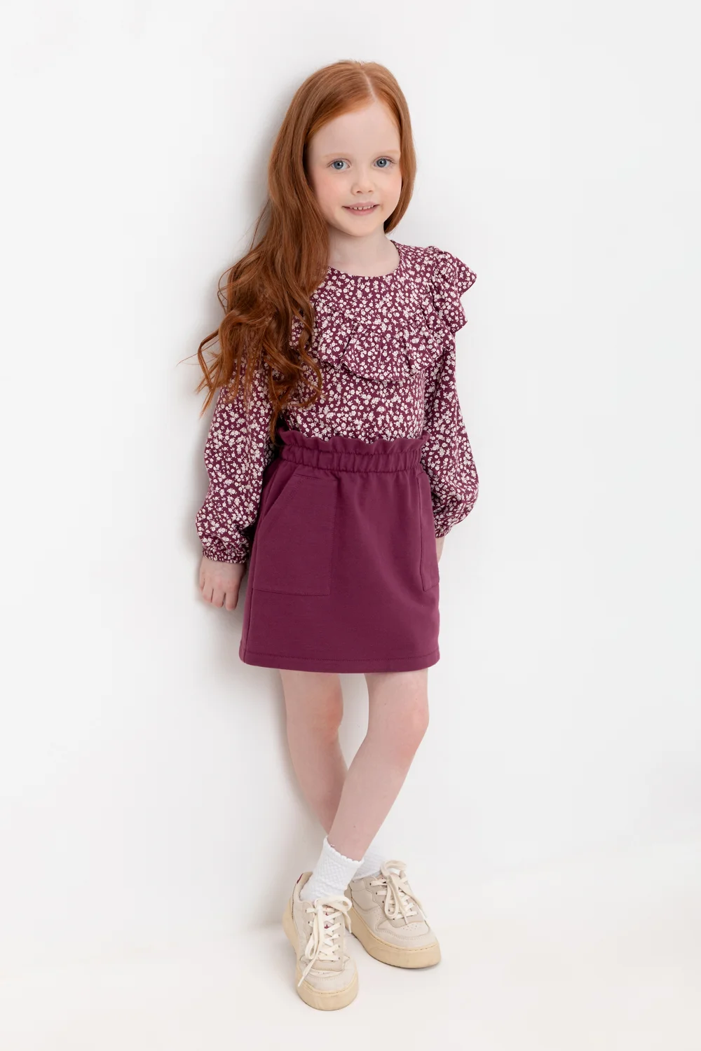 Юбка для девочки на резинке с накладными карманами из петельчатого футера.