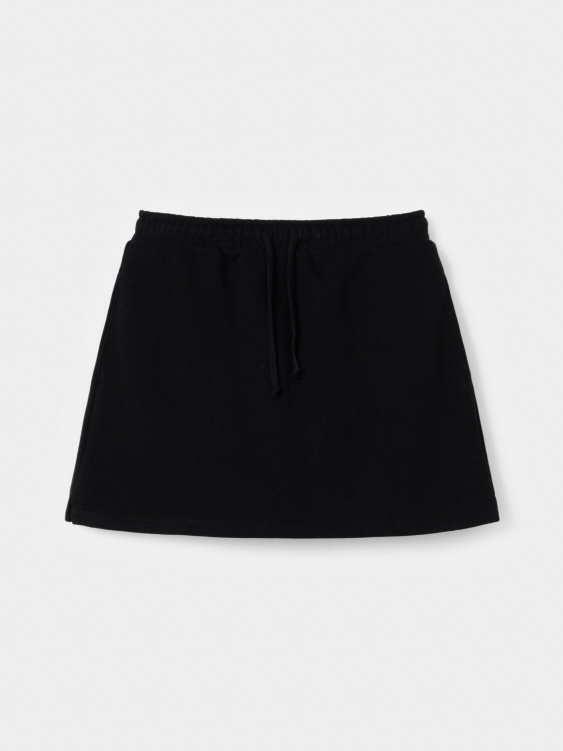 Юбка с карманами для девочки. Изготовлена из мягкого петельчатого трикотажа. В составе 80% натурального хлопка и 20% полиэстера, при этом полиэстер ввязан внутрь по особой технологии и не соприкасается с кожей. Модель имеет эластичный пояс на резинке со шнурком для регулировки по ширине талии. Изделие сохраняет цвет и форму после многократных стирок. Все трикотажные полотна производятся в соответствии с нормами швейцарского сертификата ЭкоТекс.