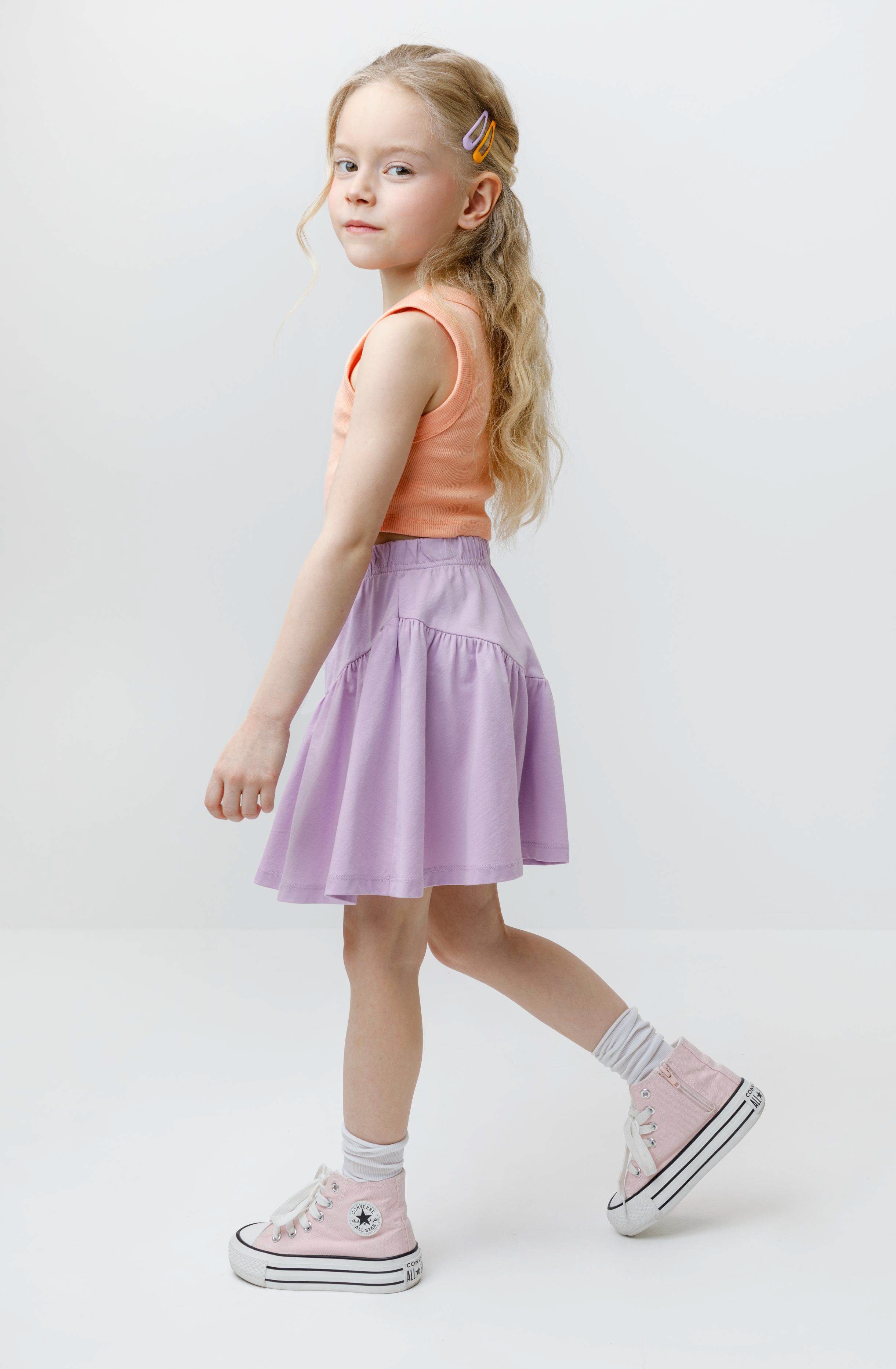 Юбка на резинке для девочки из высококачественного трикотажного полотна. Изделие сохраняет форму и стойкий цвет после многочисленных стирок и идеально подходит на каждый день. Все трикотажные полотна производятся в соответствии с нормами швейцарского сертификата ЭкоТекс.