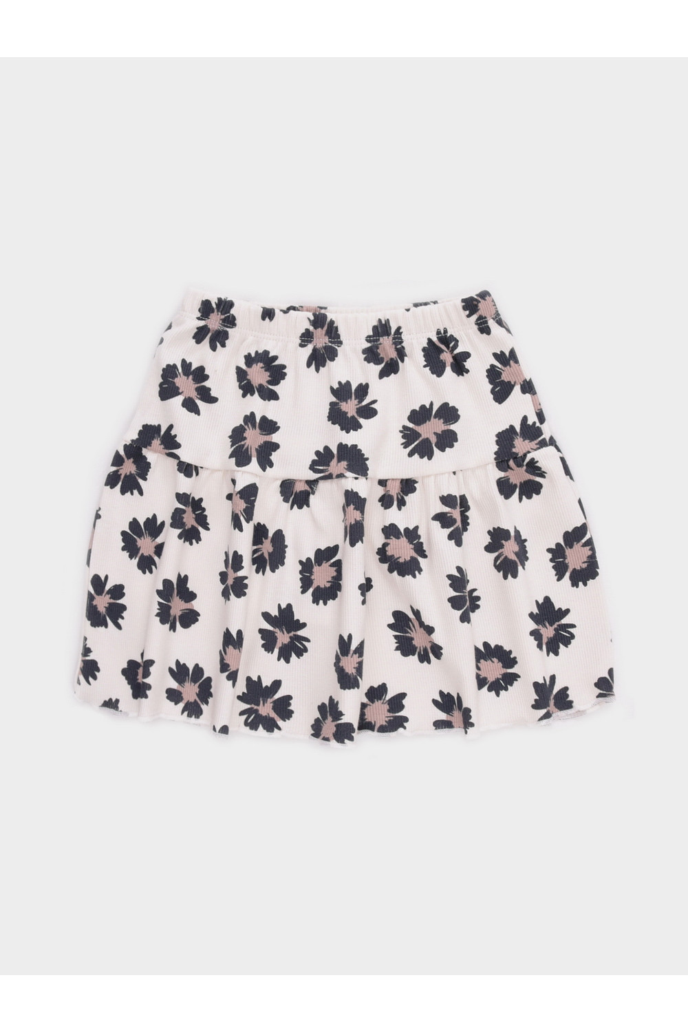 Юбка для девочки из эластичного трикотажа в рубчик. Пояс на резинке. Изделие сохраняет цвет и форму после многократных стирок. Все трикотажные полотна производятся в соответствии с нормами швейцарского сертификата ЭкоТекс.