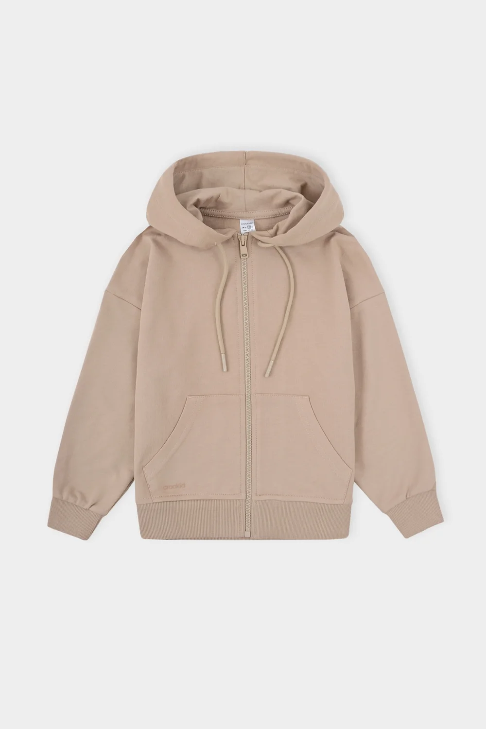 Трикотажная куртка на молнии из петельчатого футера.  Спереди удобные накладные карманы. Манжеты и пояс из эластичного трикотажа в рубчик.