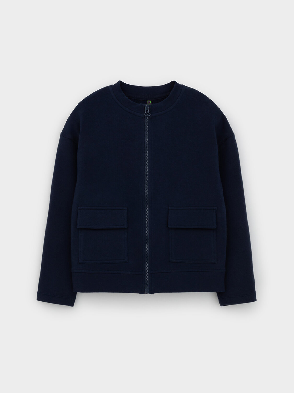 Трикотажный школьный жакет для девочки на молнии с накладными карманами. Произведен из мягкого трикотажного футера с добавлением эластана .