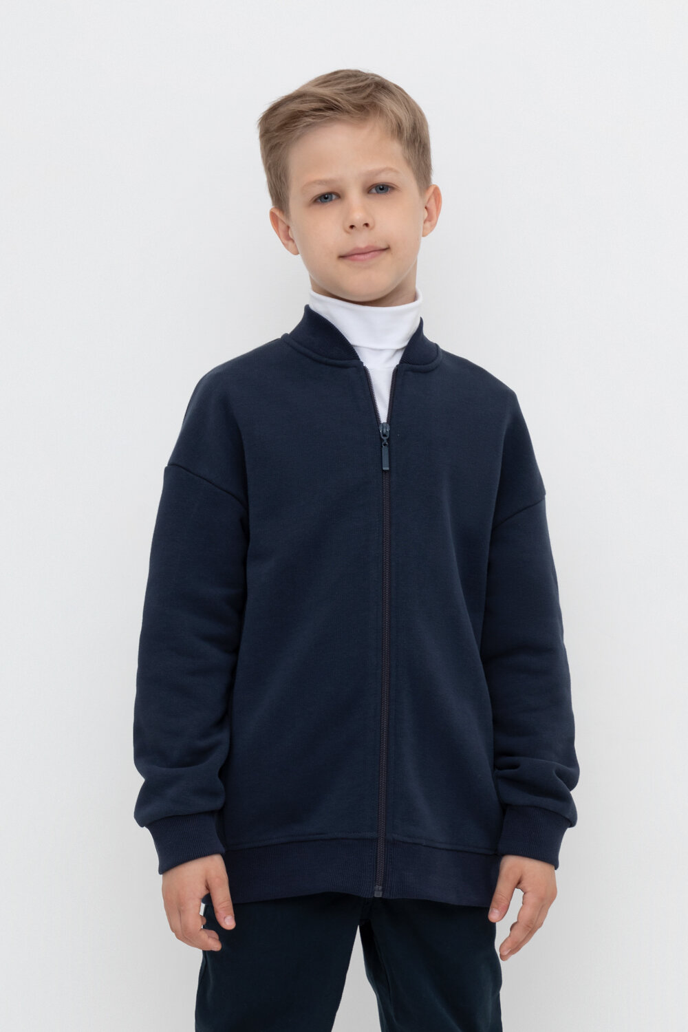 Трикотажная школьная куртка для мальчика на молнии с карманами. Произведена из мягкого трикотажного футера трёхнитки. В составе 80% натурального хлопка и 20% полиэстера, при этом полиэстер ввязан внутрь по особой технологии и не соприкасается с кожей.