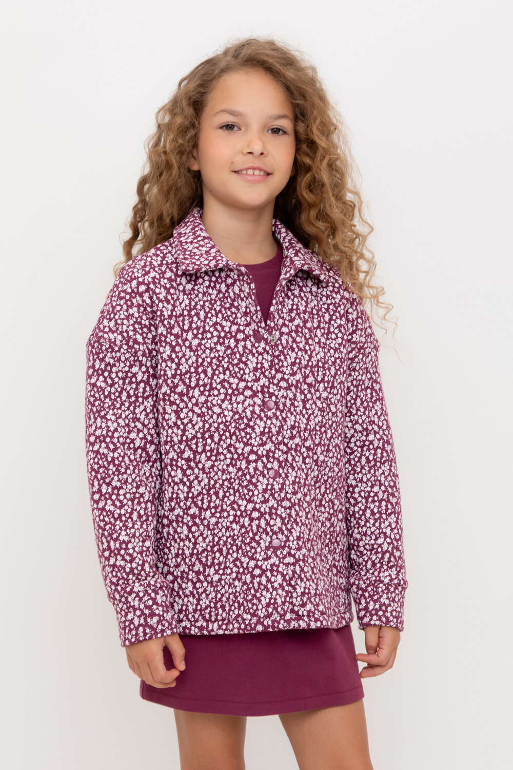 Свободная трикотажная рубашка для девочки из мягкого капитония на кнопках. Модель с закругленным низом и спущенным плечом. Оригинальная набивка выполнена из стойких текстильных гипоаллергенных красителей.