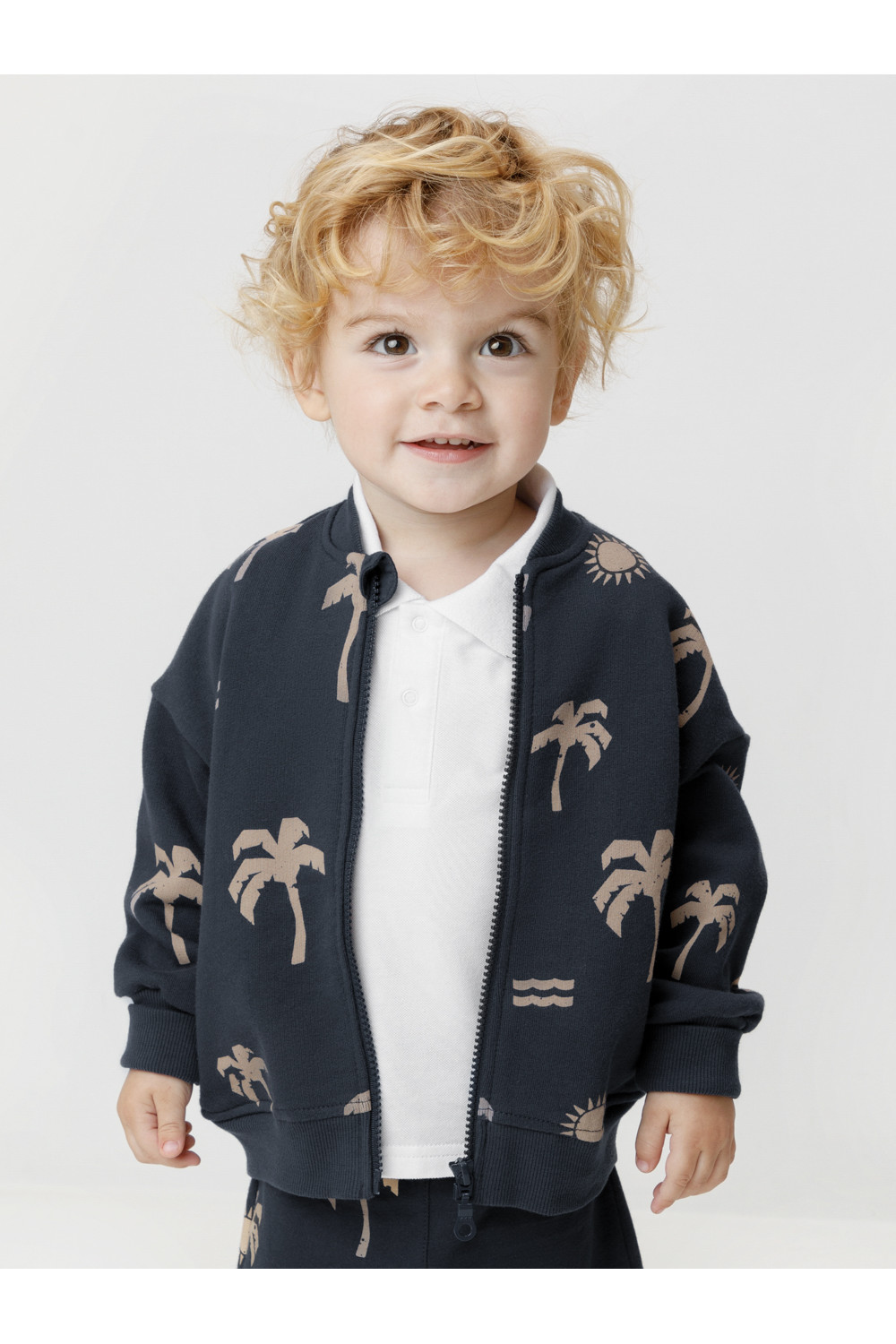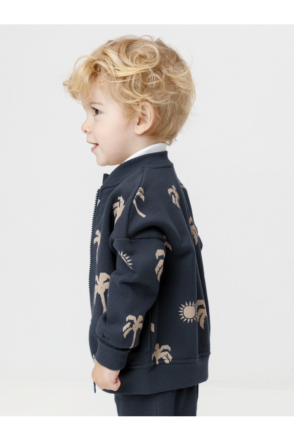 Трикотажный бомбер для мальчика из мягкого петельчатого футера трёхнитки. Спереди удобная застёжка на молнию с защитой шеи и подбородка. Пояс, манжеты и воротник выполнены из эластичного трикотажа. По бокам карманы. Изделие сохраняет цвет и форму после многократных стирок. Все трикотажные полотна производятся в соответствии с нормами швейцарского сертификата ЭкоТекс.