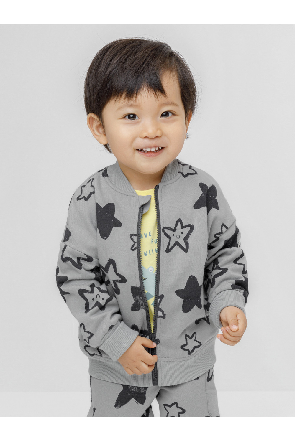 Трикотажный бомбер для мальчика. Изготовлен из мягкого петельчатого футера. Спереди удобная застёжка на молнию. Пояс, воротничок и манжеты выполнены из эластичного трикотажа. По бокам карманы. Изделие сохраняет цвет и форму после многократных стирок. Все трикотажные полотна производятся в соответствии с нормами швейцарского сертификата ЭкоТекс.