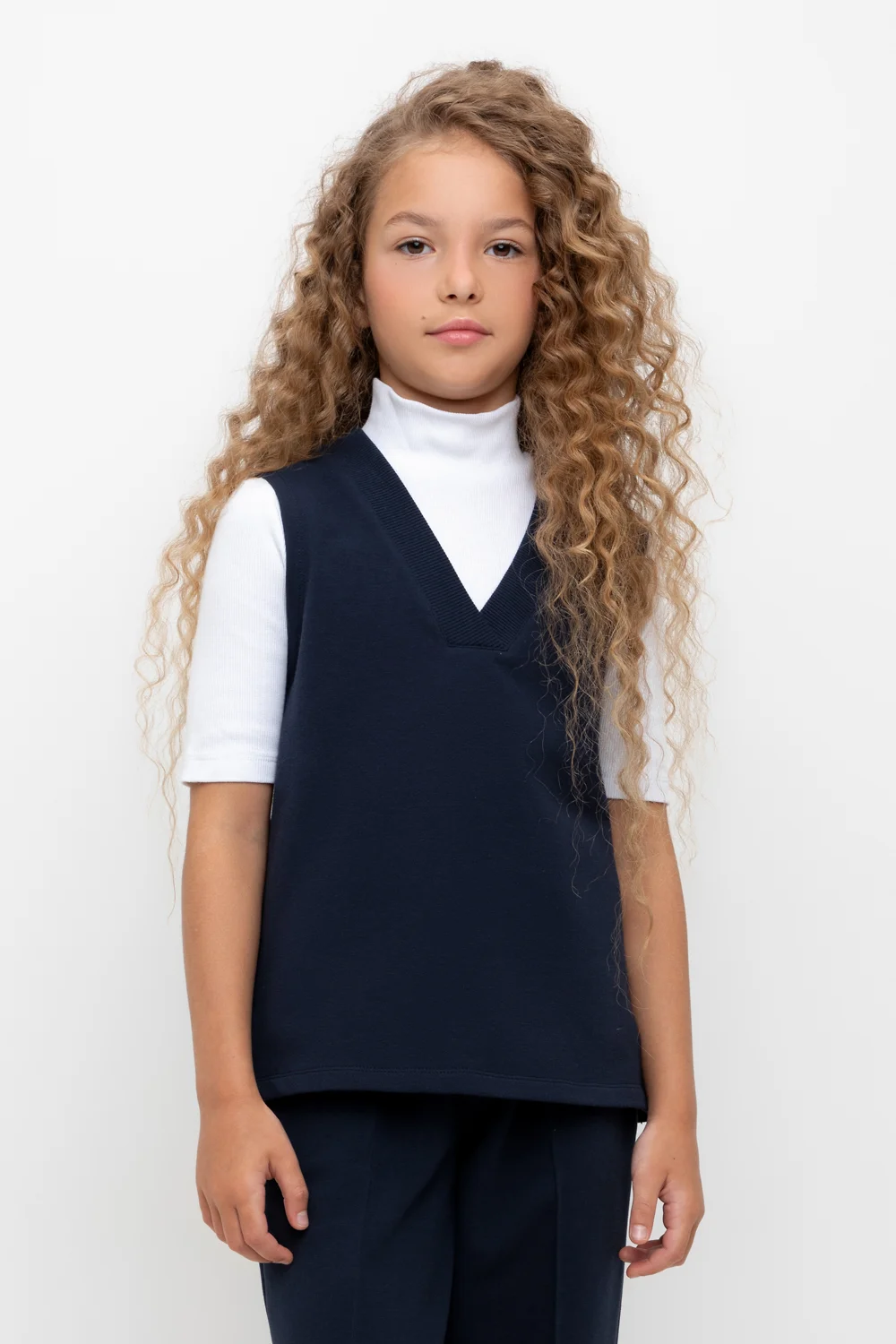 Жилет школьный для девочки. Произведен из мягкого трикотажного футера петли с добавлением эластана