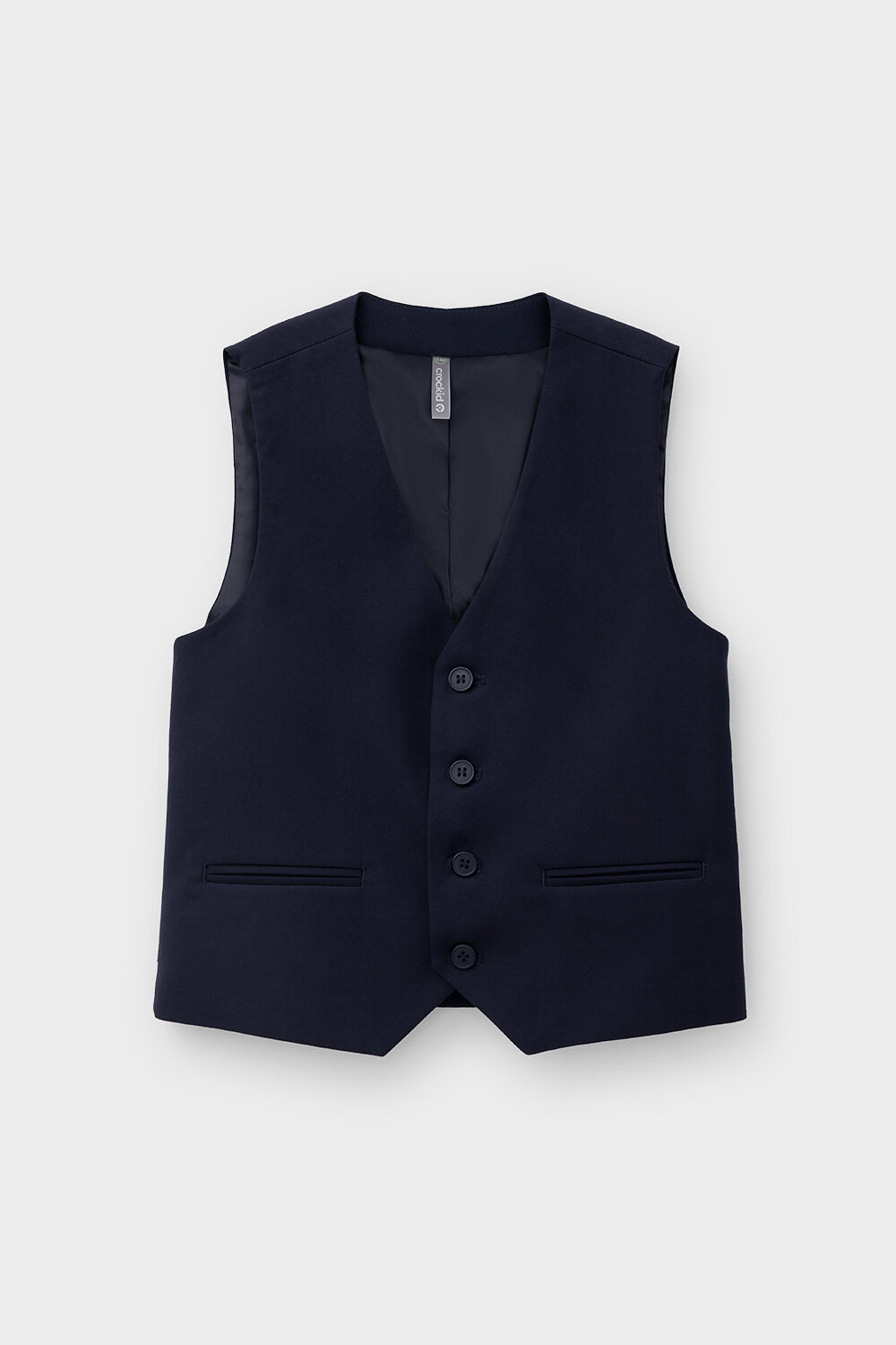 Классический школьный жилет для мальчика. Cпереди застёгивается на пуговицы. По бокам два ложных кармана. Сзади ремешок для регулировки жилета по ширине.