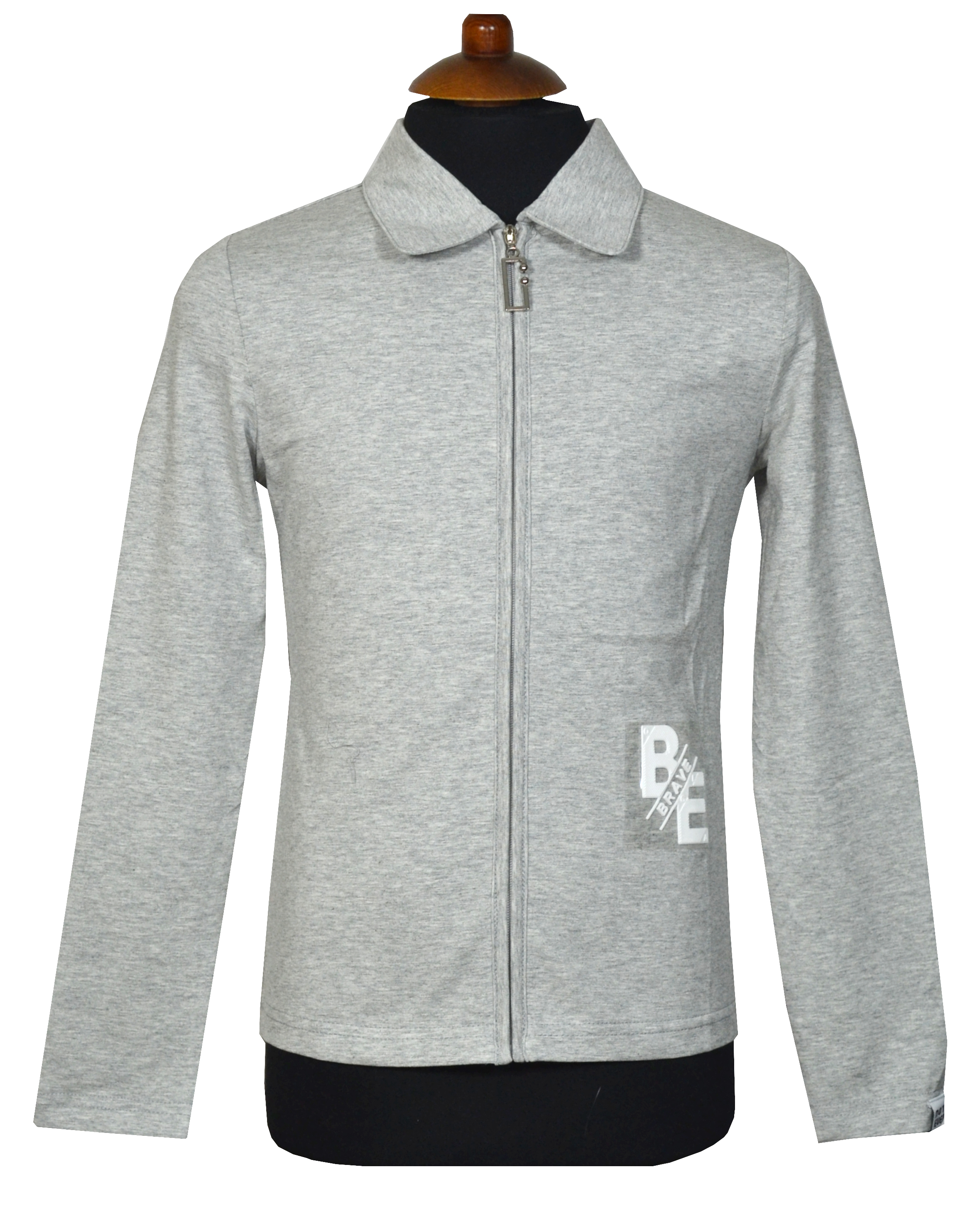 Трикотажная блузка на замке с отложным воротником.Дополнена прорезиненной наклейкой. Застежка на замок. Ткань не тонкая, не просвечивает, с добавлением эластана. Спинка изделия без особенностей. По одному рукаву нашит шеврон.