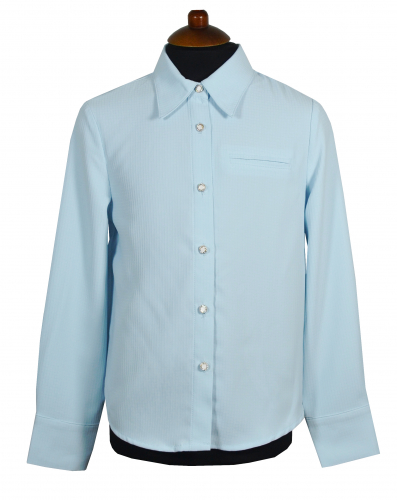 Блузка с длинным рукавом из вискозной ткани свободного кроя. Отложной воротник. Застежка на пуговицы.