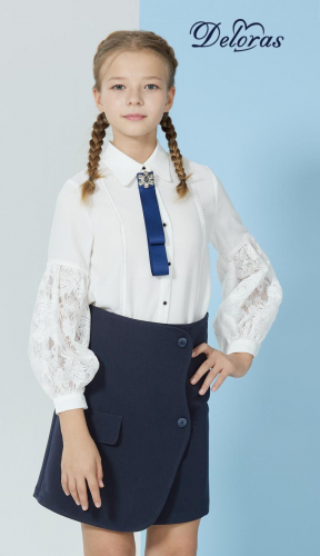 Блузка с длинным рукавом из премиального вискозного полотна. Ткань очень приятная к телу, не просвечивает. Отложной воротник. Рукав дополнен кружевным полотном. Крой прямой, не приталенный. Застежка на пуговицы. Галстук входит в комплект.
