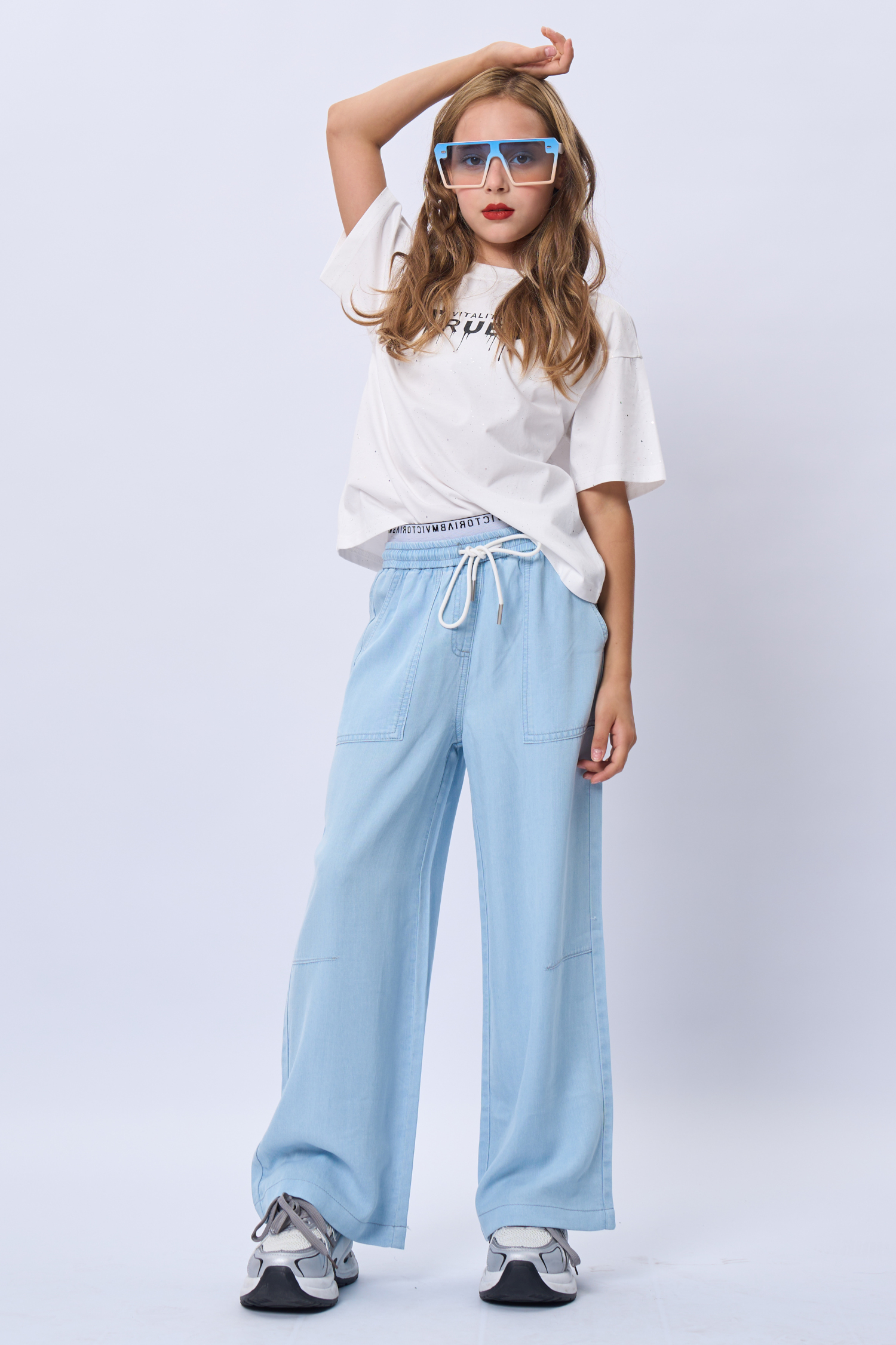 Брюки для девочки из тонкой ткани. Пояс на резинке. Функциональные карманы. Сезон лето.