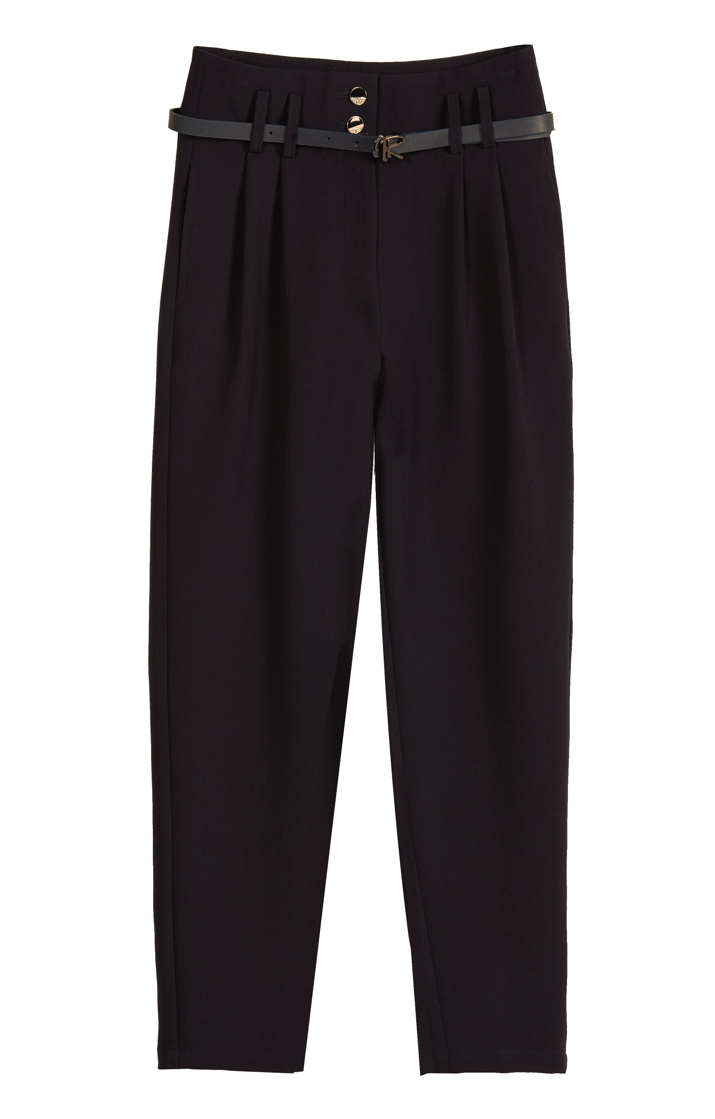 Брюки бананы из плотной костюмной ткани с добавлением эластана.  Пояс регулируется потайной резинкой. Прорезные карманы. Пошив безупречный. Застежка на замок и пуговицу.   Ремень входит в комплект.