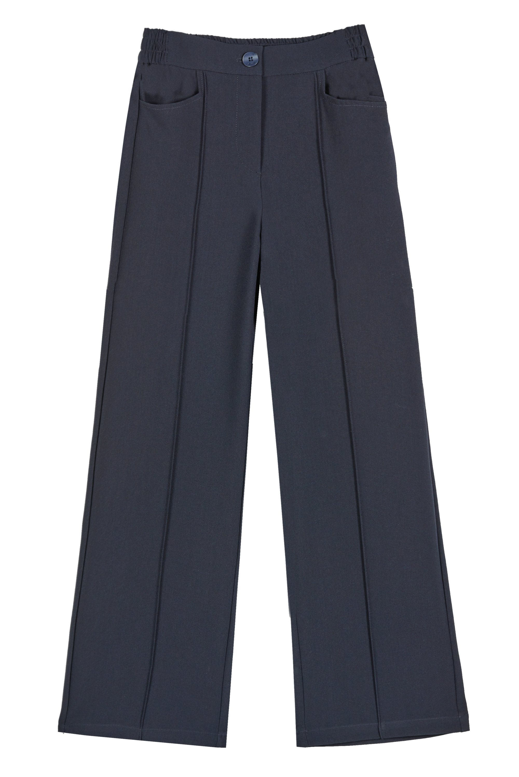 Кюлоты из костюмной ткани.  Пояс на резинке по спинке. Функциональные карманы. Стрелки прострочены. Пошив безупречный. Брюки широкие.