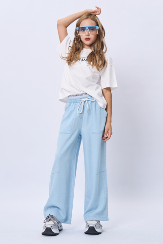 Футболка  для девочки свободного кроя. Выполнена из качественного хлопкового полотна. Дополнена принтом.