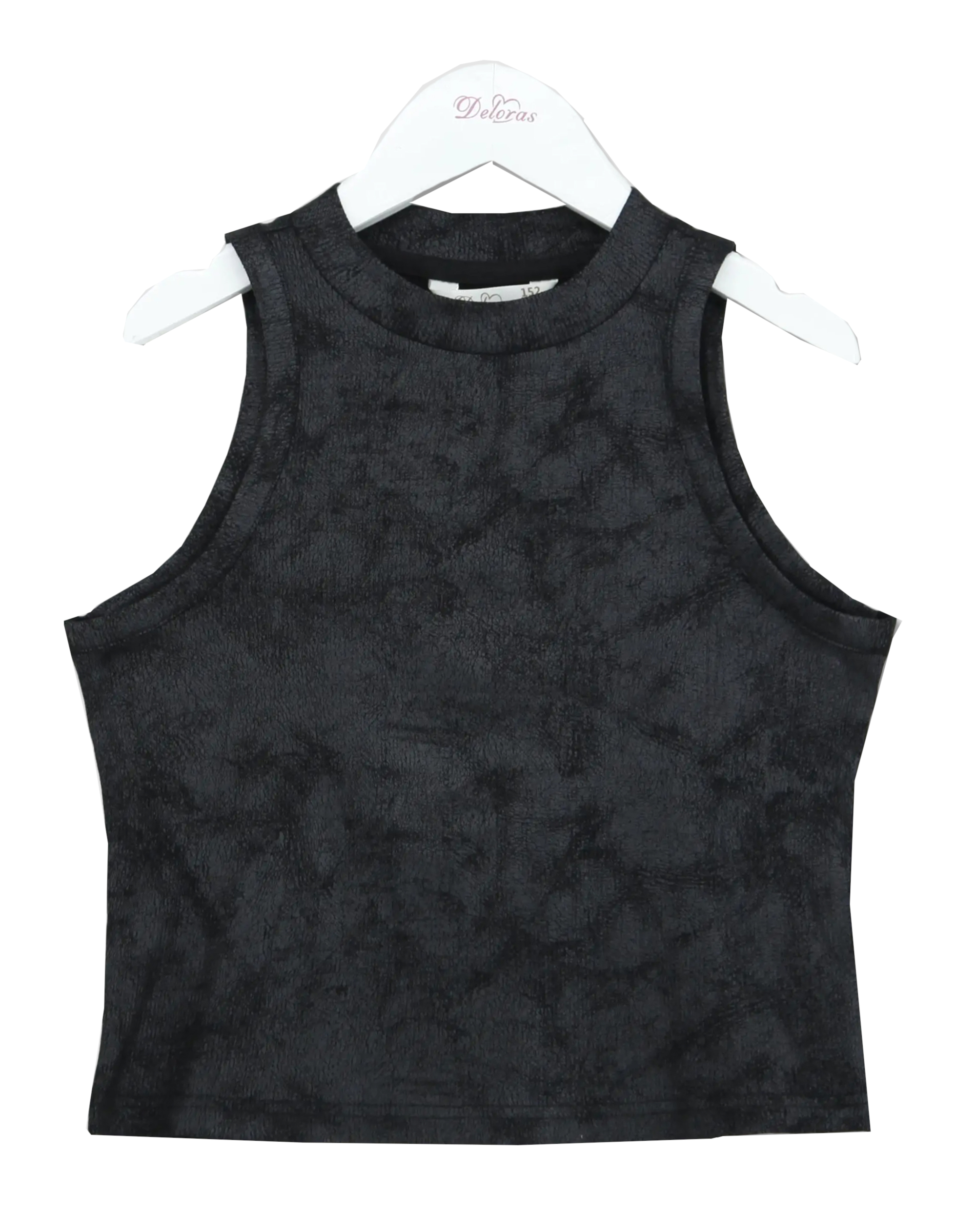 Майка для девочки из вискозной ткани с вырезом под горло. Ткань средней плотности.