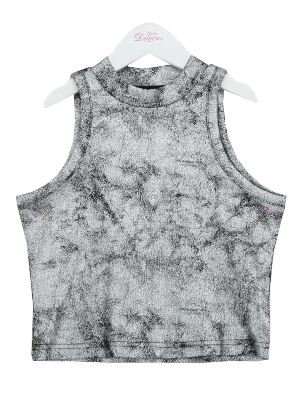 Майка для девочки из вискозной ткани с вырезом под горло. Ткань средней плотности.