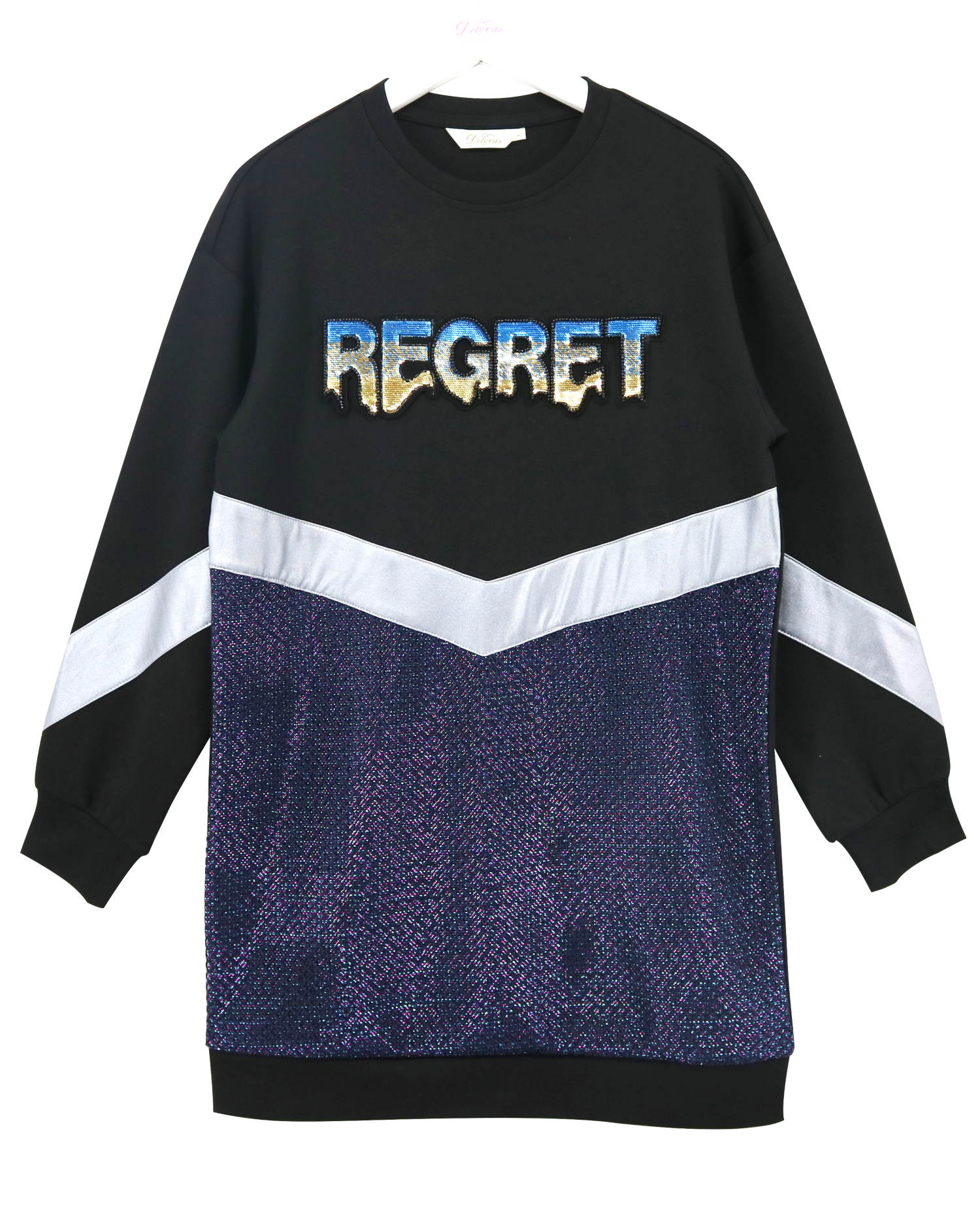 Модное платье с длинным рукавом для девочек. Изделие выполнено из высококачественного трикотажа. Модель дополнена пайетками.