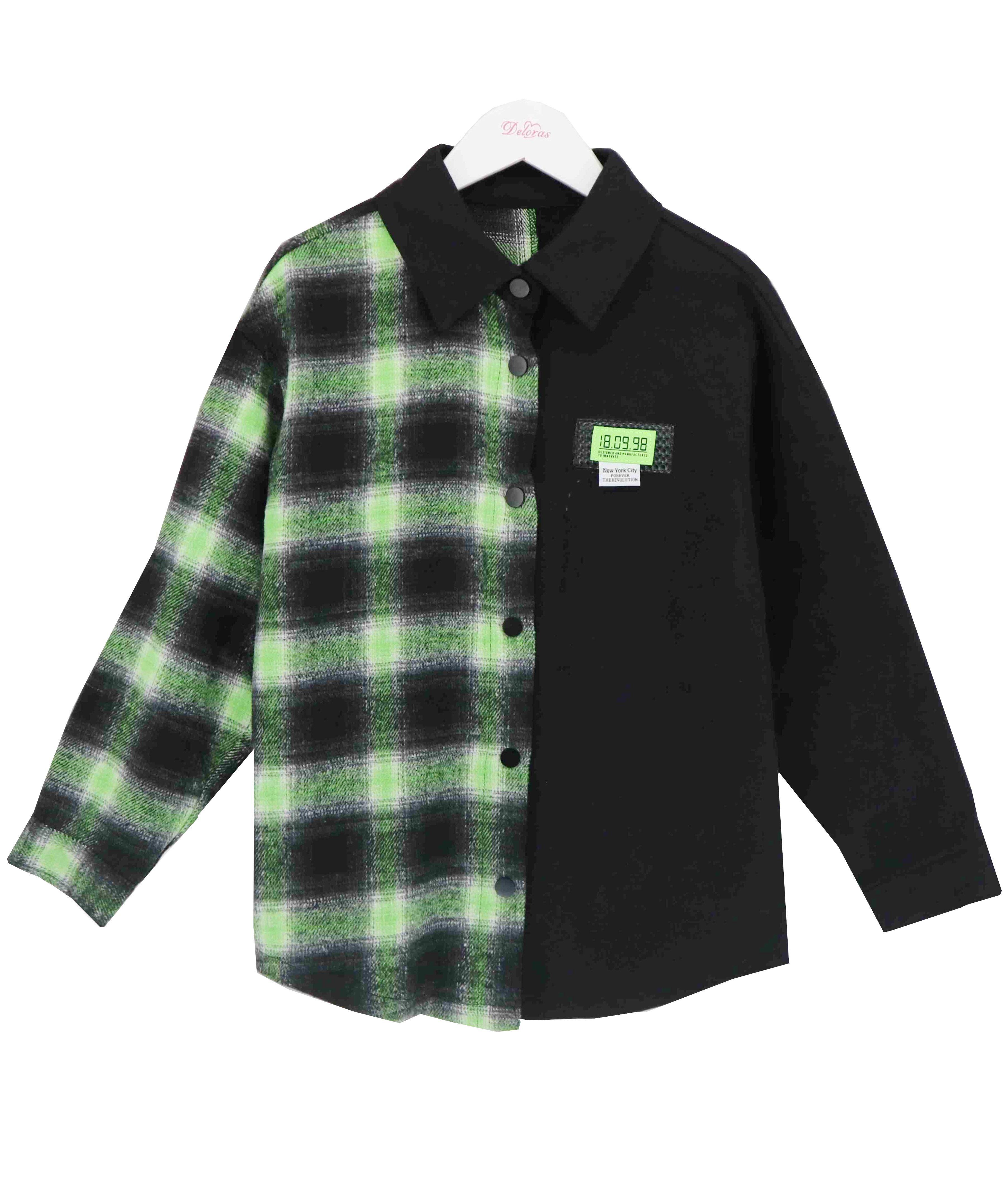 Рубашка для девочки. Ткань цвета хаки плотная, по типу тонкая джинса. Ткань в клетку мягкая как байка. Комбинация тканей . Застежка на кнопки. Дополнена рубашка шевроном. Спинка также как и перед комбинирован на половину клеткой и однотонные полотном. Отличный вариант поверх футболки.