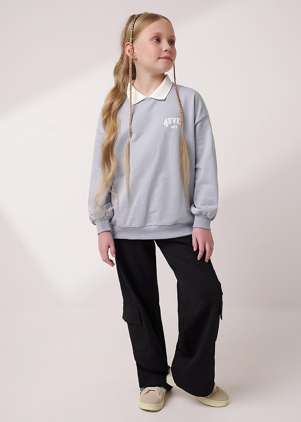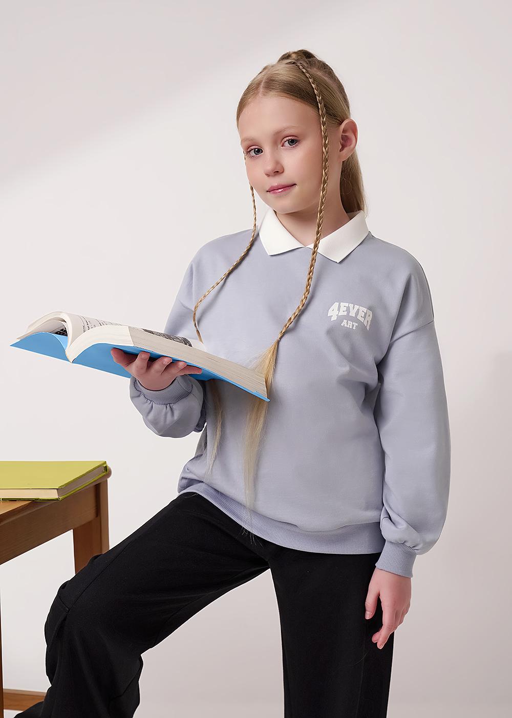 "Описание: Стильный джемпер из мягкого футера в нежном голубом оттенке- то, что нужно для создания классного лука и отличного настроения! Модель с объёмными рукавами дополнена контрастным вязаным воротничком. Создавай стильные образы на каждый день и будь в тренде!